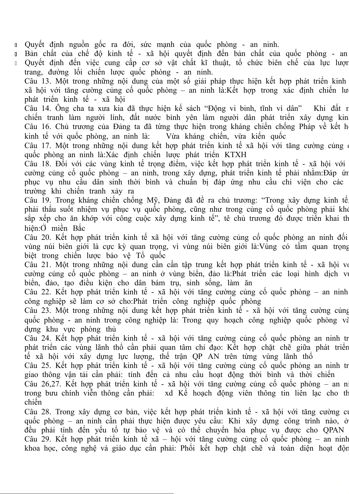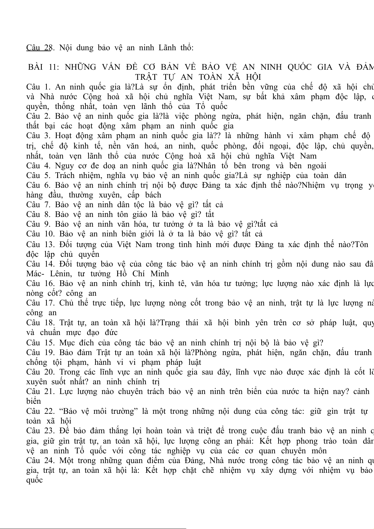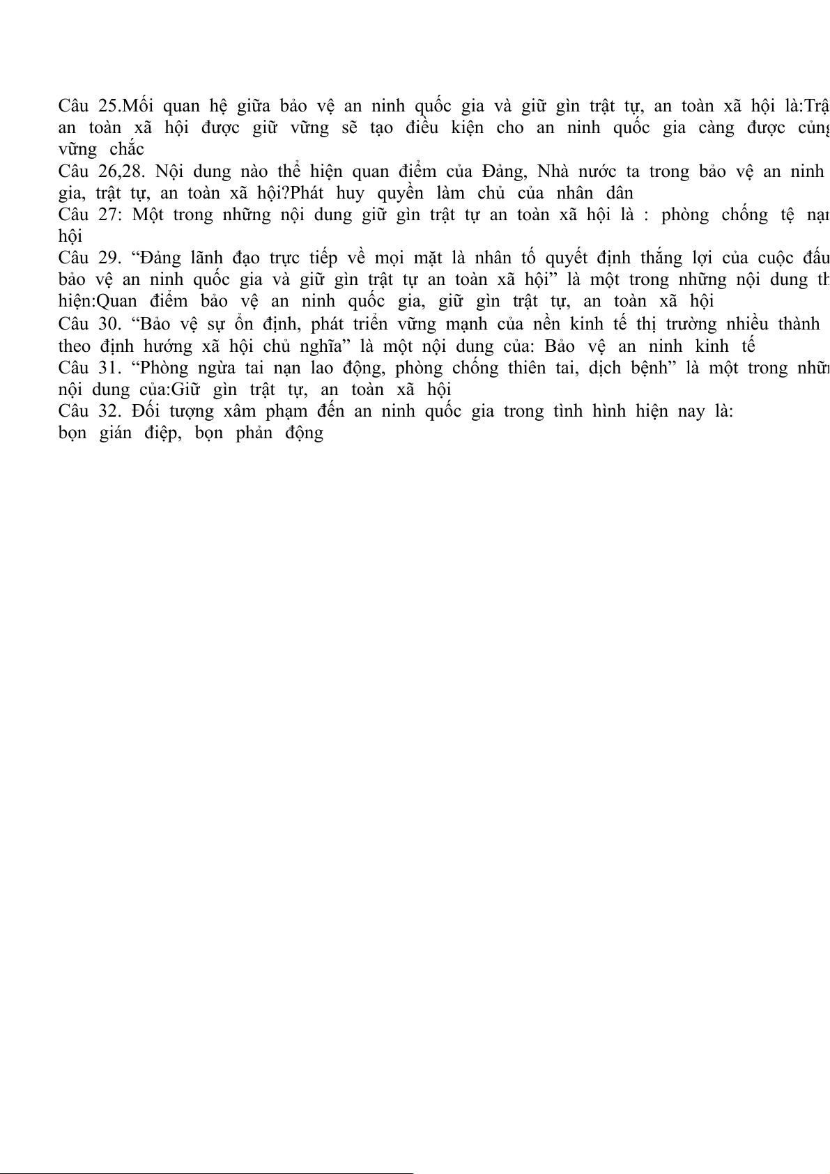 Câu 26,28. Nội dung nào thể hiện quan điểm của Đảng, Nhà nước ta trong bảo vệ an ninh