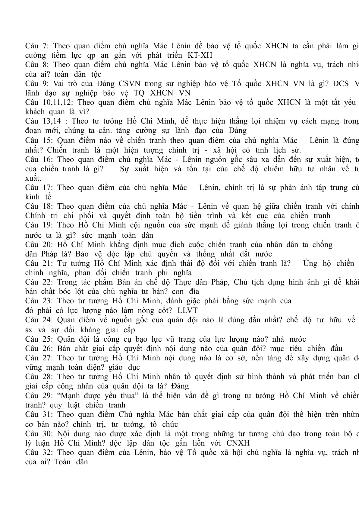 Câu 8: Theo quan điểm chủ nghĩa Mác Lênin bảo vệ tổ quốc XHCN là nghĩa vụ, trách nhiệ