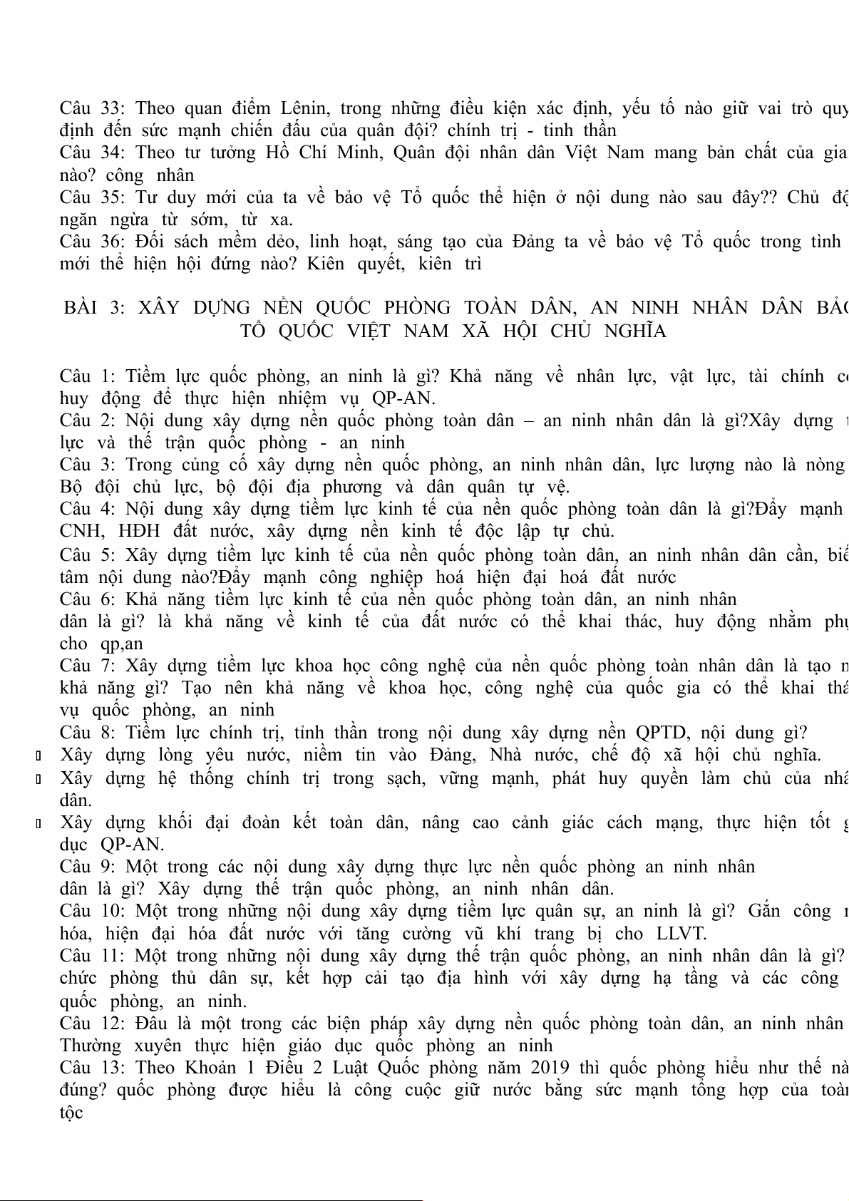 Câu 3: Quá trình nghiên cứu môn học giáo dục quốc phòng an ninh phải nắm vững và vận