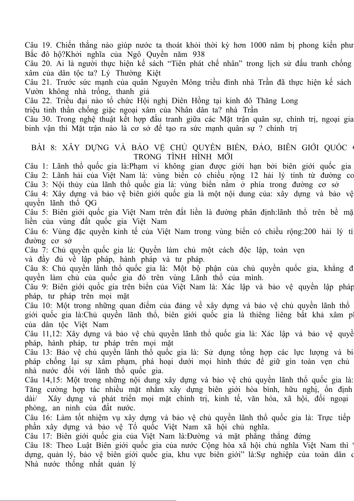 Câu 10. Bảo vệ an ninh biên giới là ở ta là bảo vệ gì? tất cả