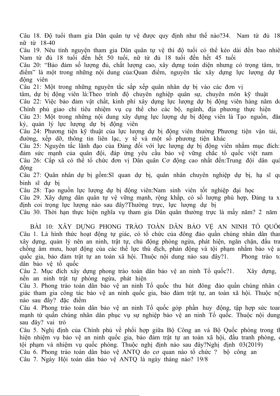 Câu 19. Mục đích của phong trào toàn dân bảo vệ an ninh Tổ quốc là:Huy động sức mạnh