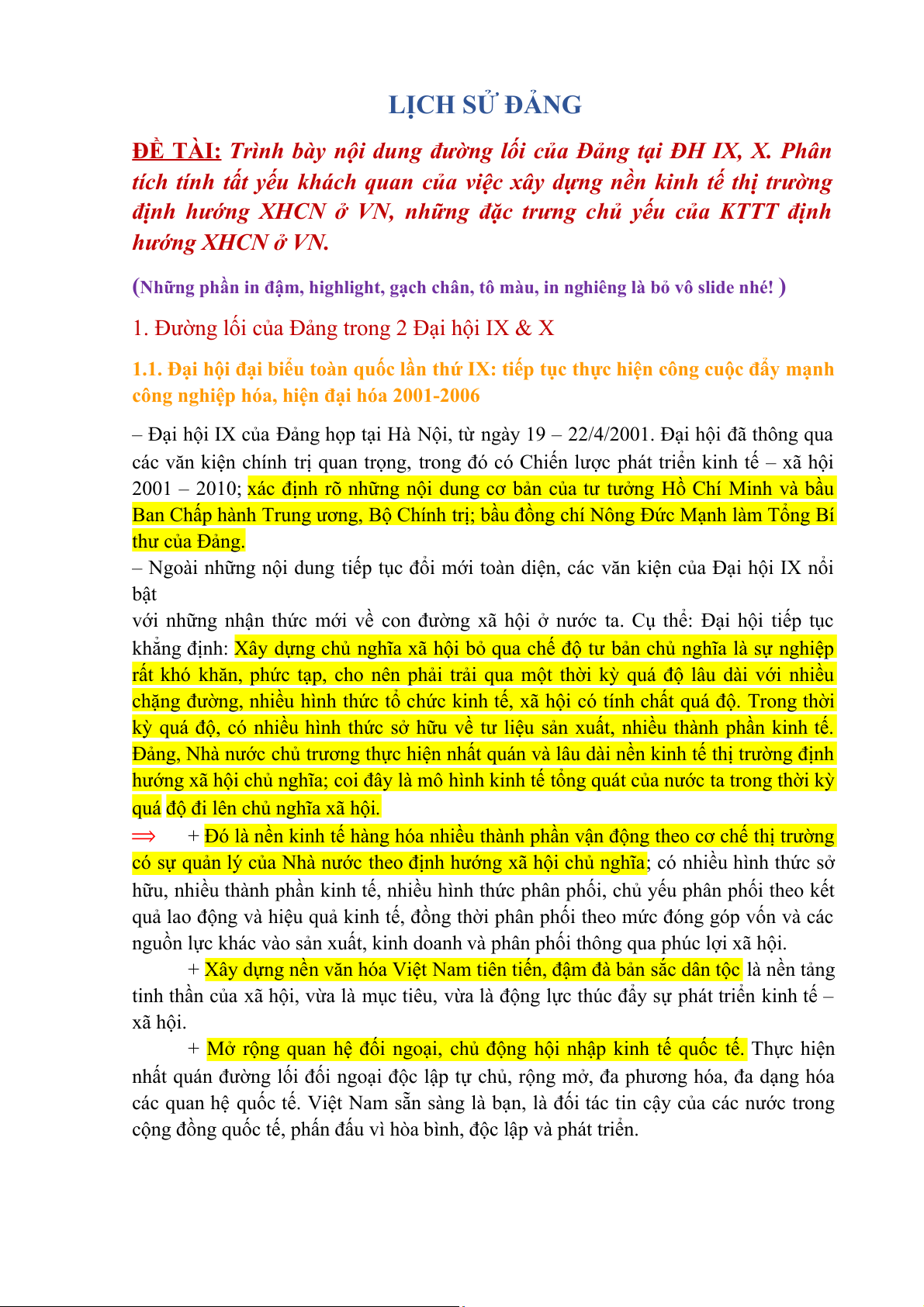 1. Đường lối của Đảng trong 2 Đại hội IX & X