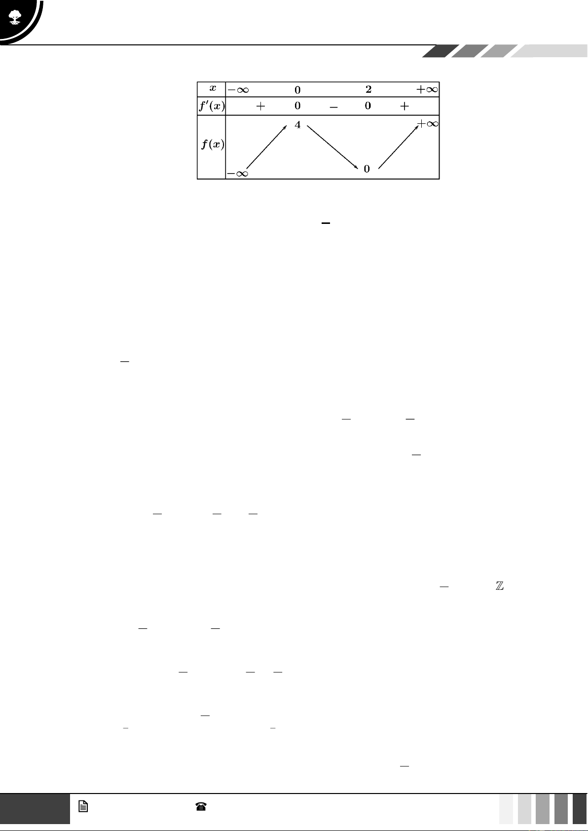 Câu 12: Cho hàm số y = f ( x) có bảng biến thiên như sau :