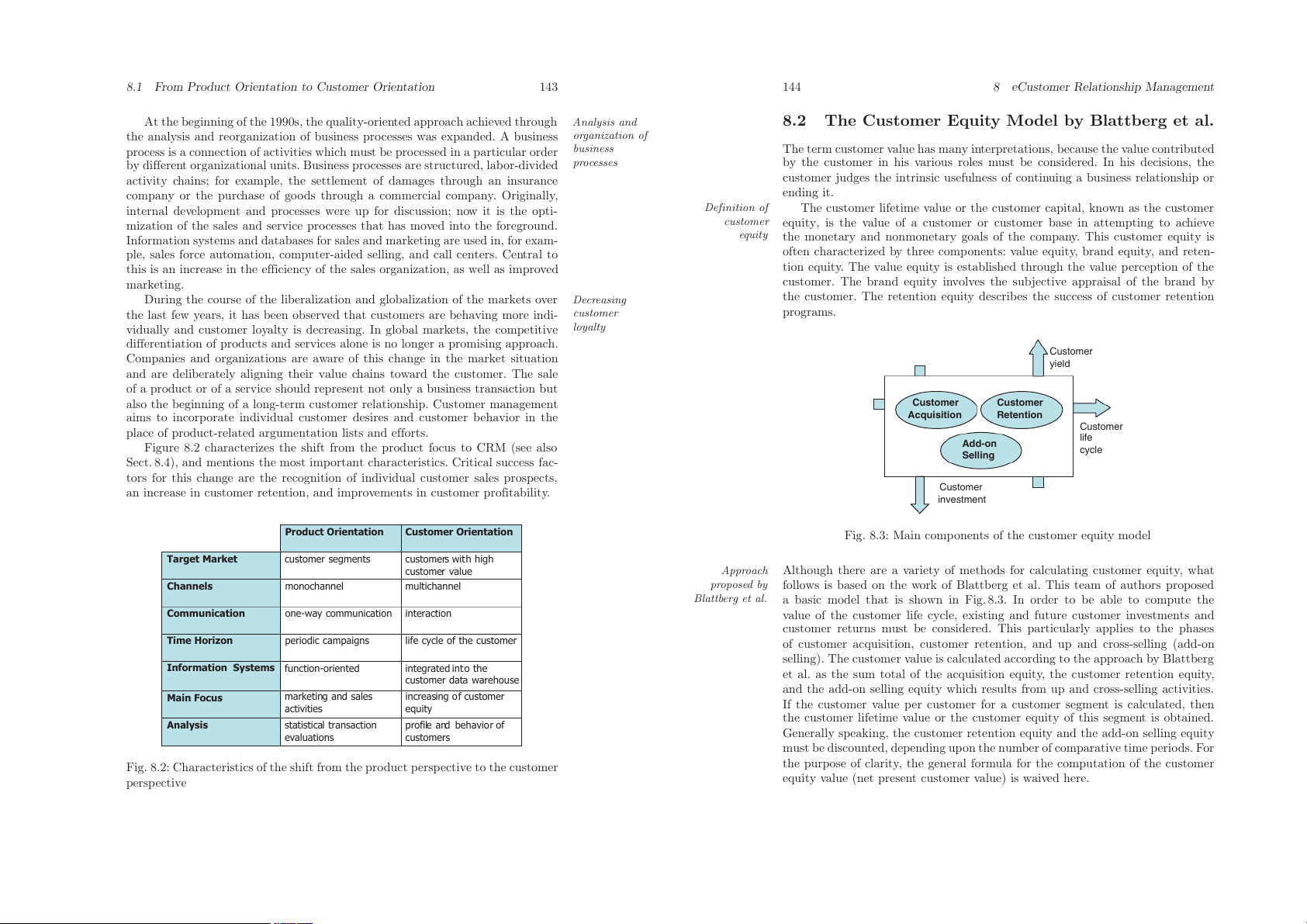 by Blattberg et al. for the computation of customer equity. Section 8.3 deals with Elements of