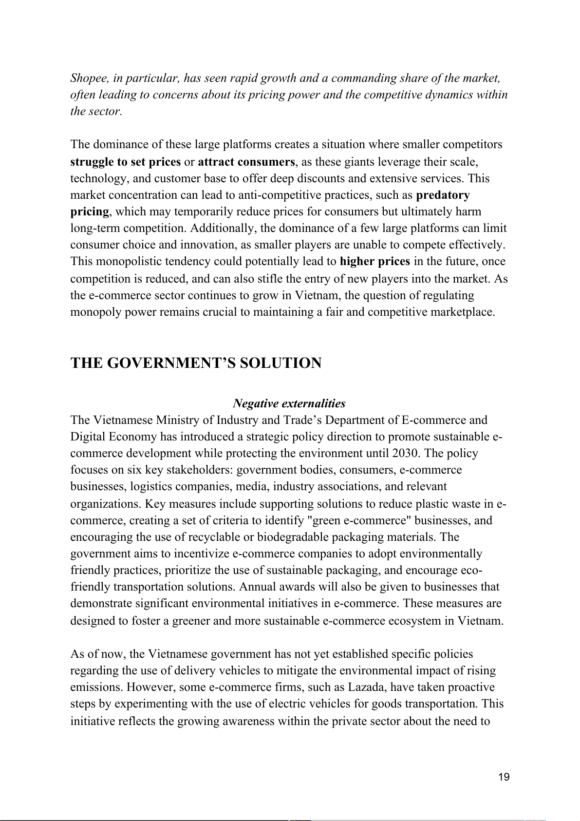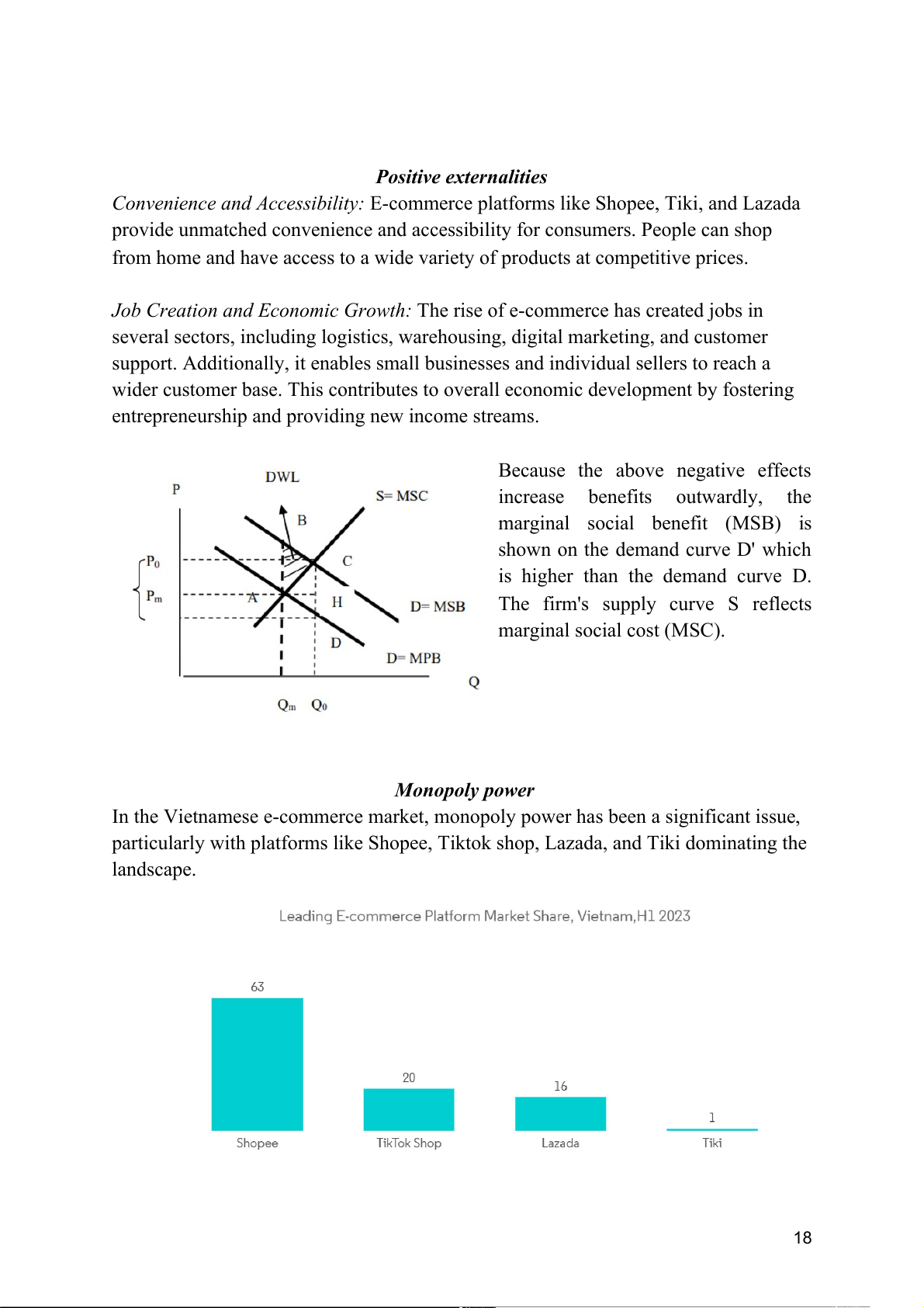 dominant platforms like Shopee, Lazada, and Tiki) is not entirely efficient. Externalities: