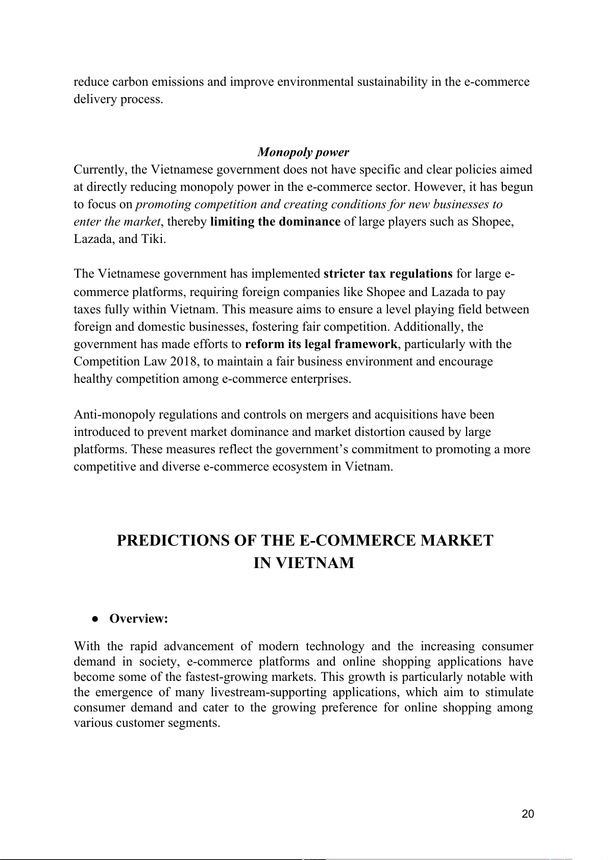enter the market, thereby limiting the dominance of large players such as Shopee, Lazada, and Tiki.