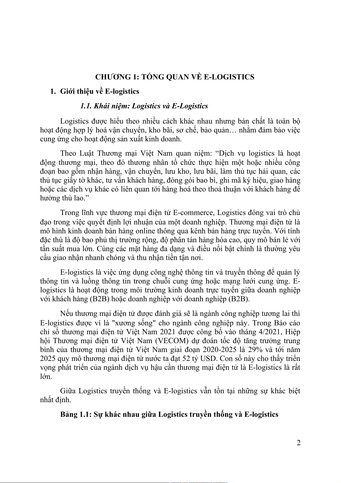 CHƯƠNG 1: TỔNG QUAN VỀ E-LOGISTICS