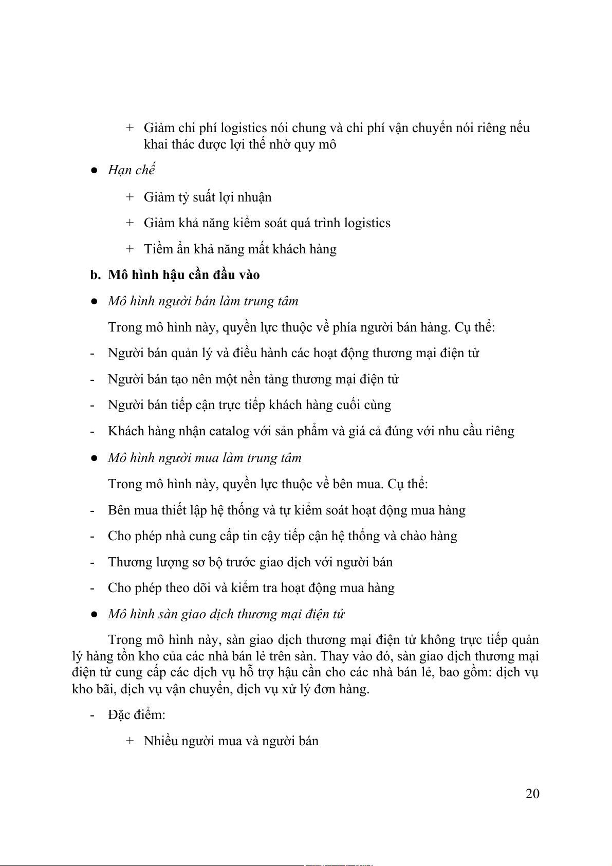 vận tải, kho bãi,... được sử dụng để thực hiện các hoạt động E - logistics. 18