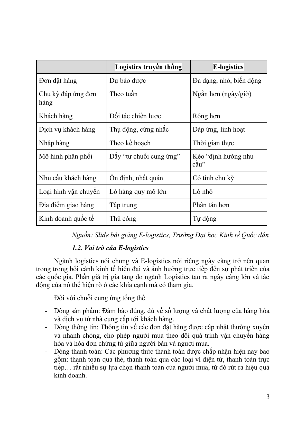 Bảng 1.1: Sự khác nhau giữa Logistics truyền thống và E-logistics 2