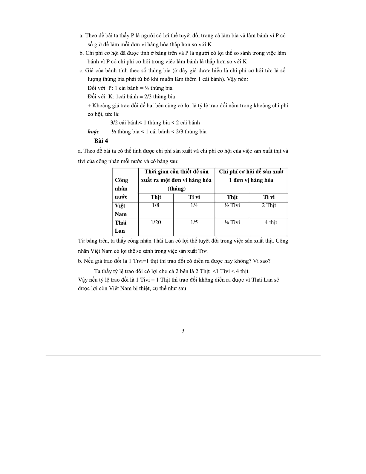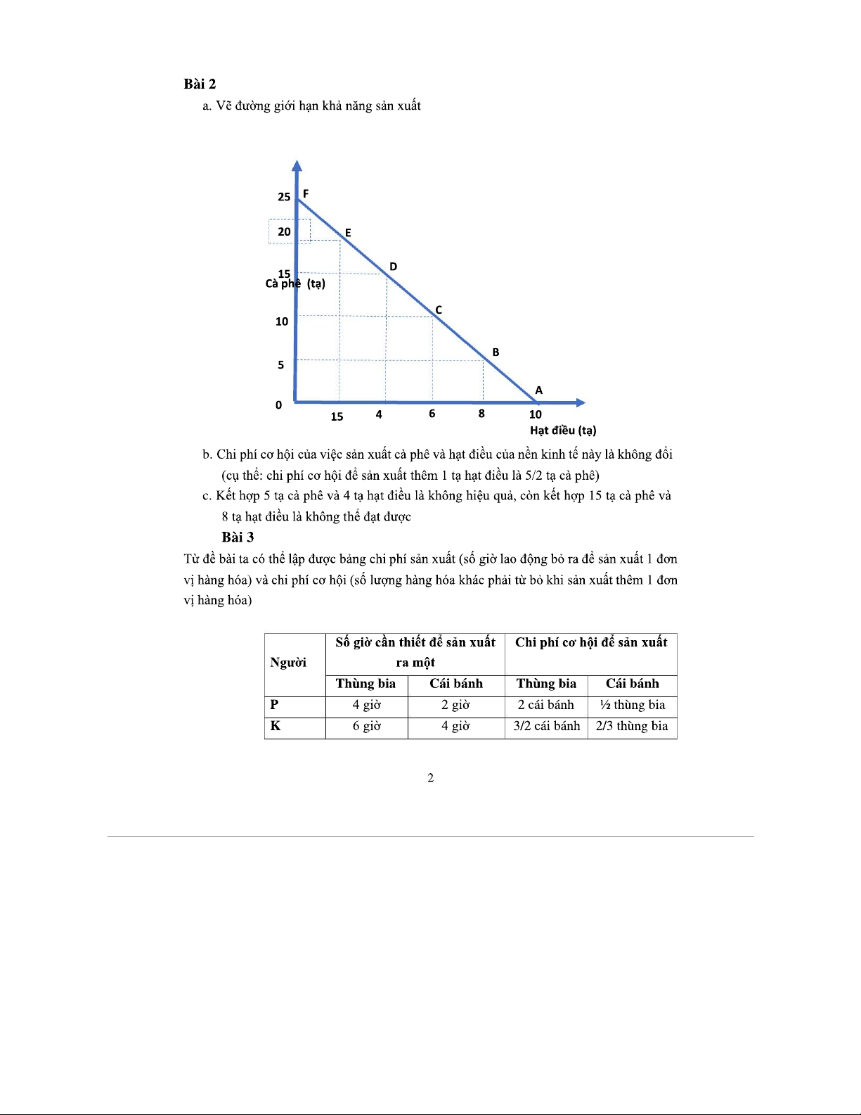 EC101 Đáp Án Bài Tập Chương 2: Chi Phí Cơ Hội và Sản Xuất