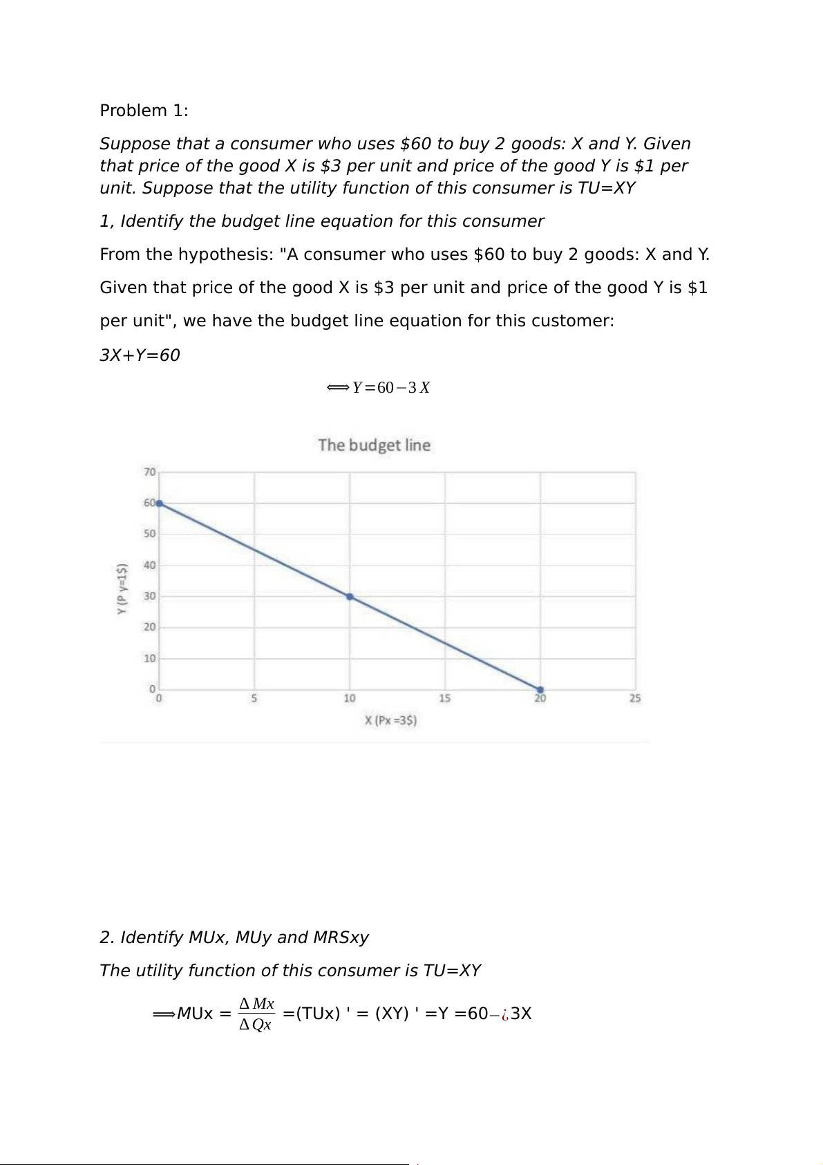 From the hypothesis: "A consumer who uses $60 to buy 2 goods: X and Y.