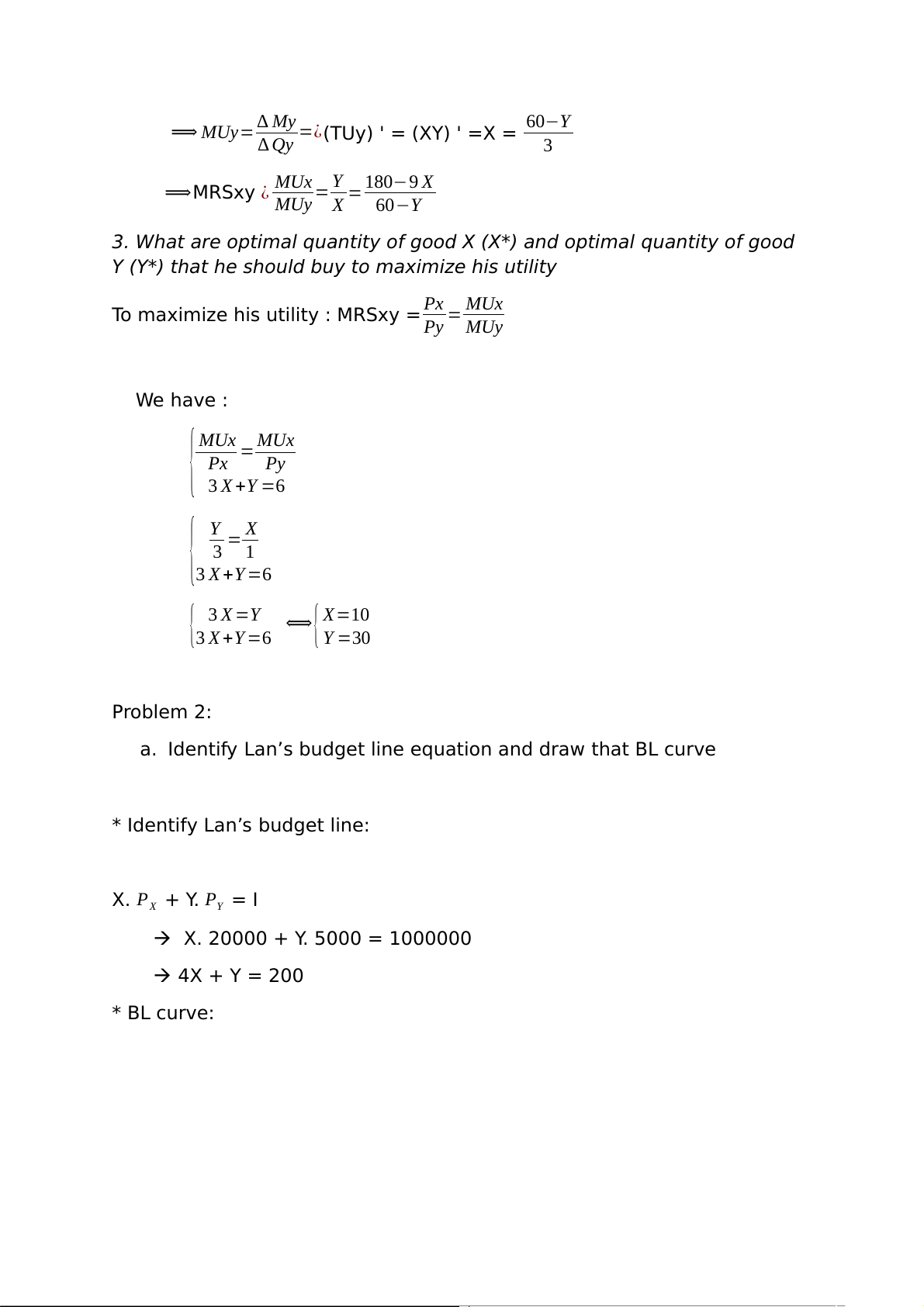 3. What are optimal quantity of good X (X*) and optimal quantity of good