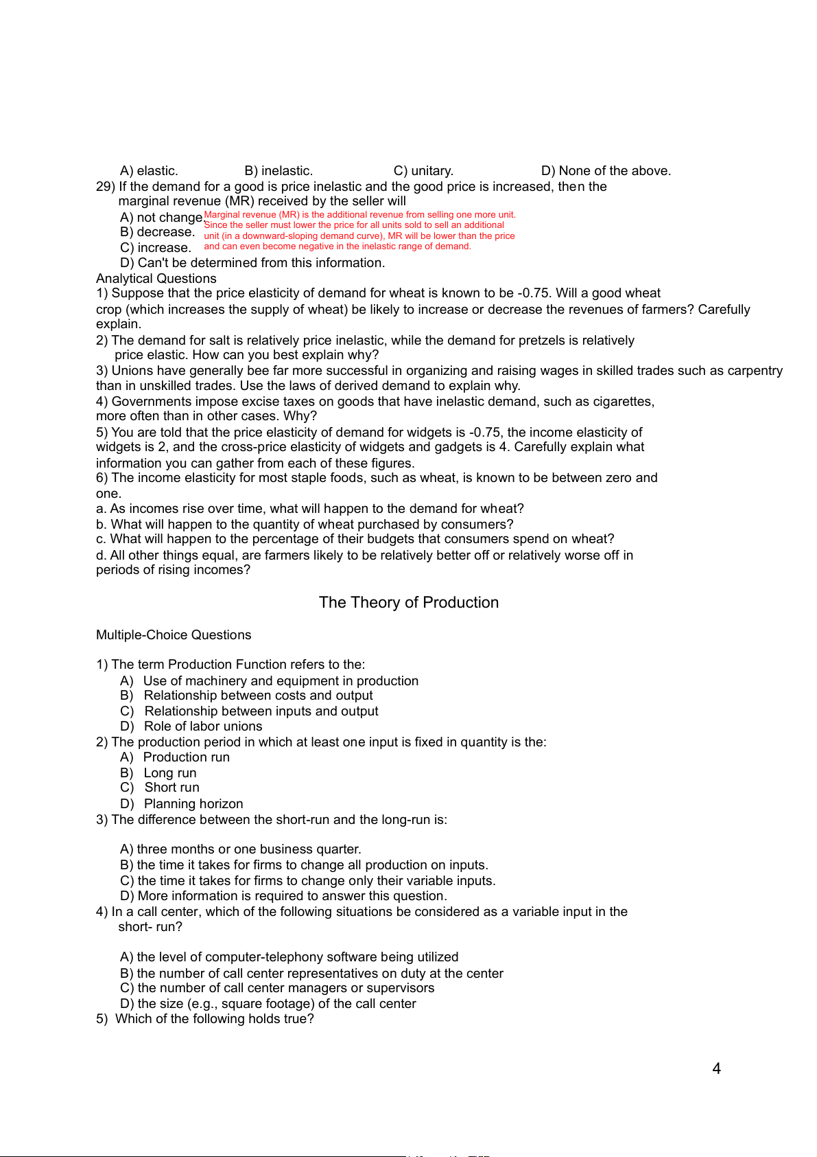 near future. How might managers use this information? Demand Elasticity Multiple-Choice Questions