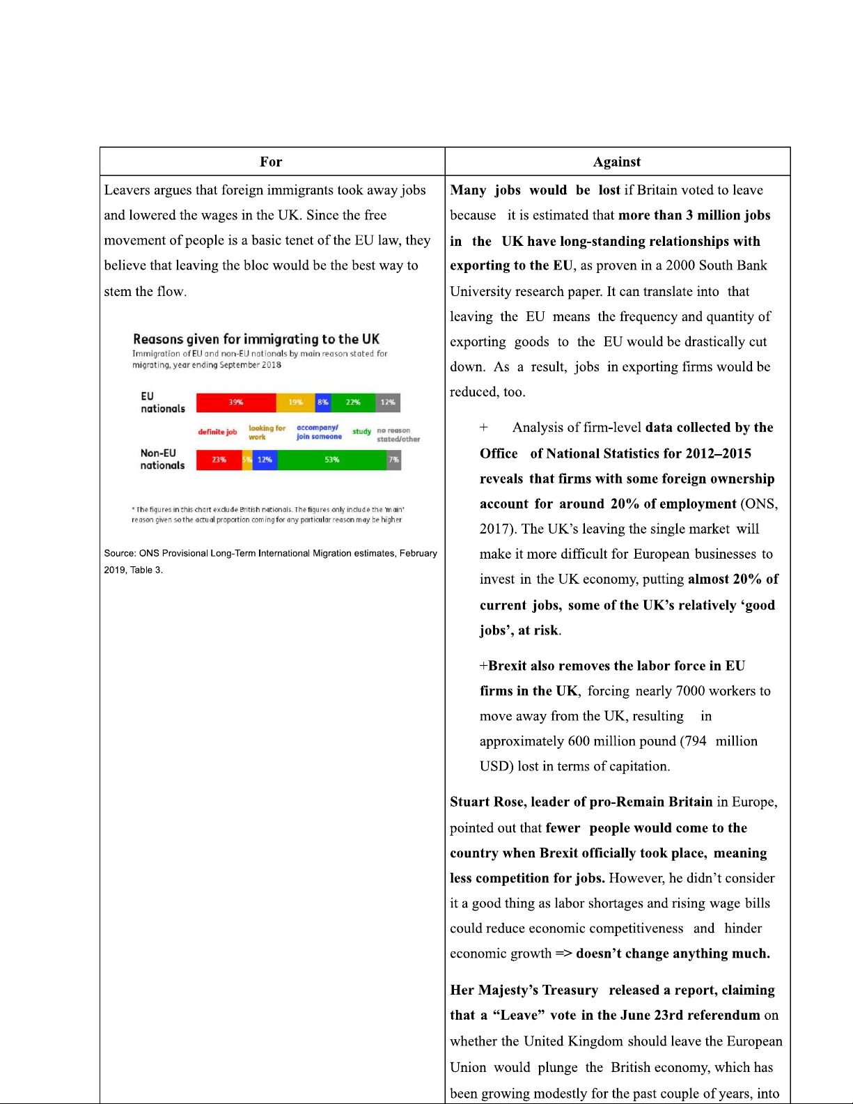 Economic Arguments for and Against Brexit Analysis (ECO 101)