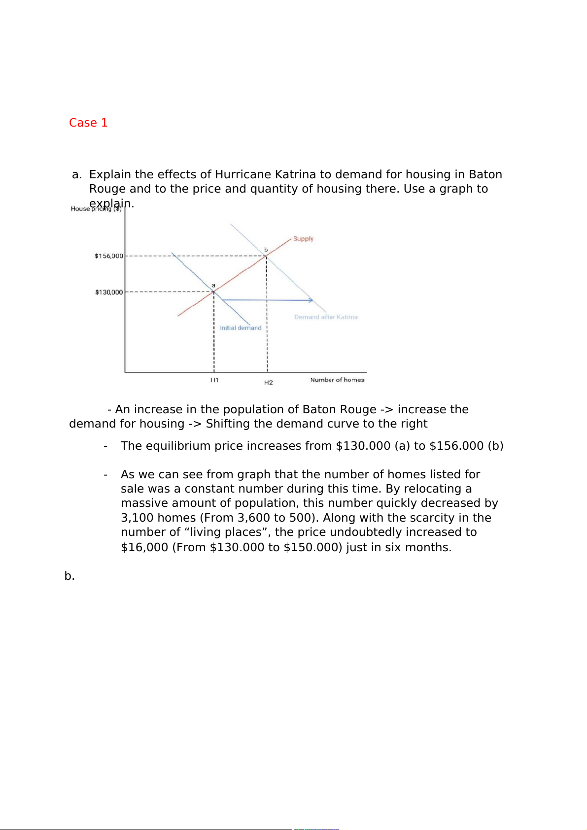 a. Explain the effects of Hurricane Katrina to demand for housing in Baton