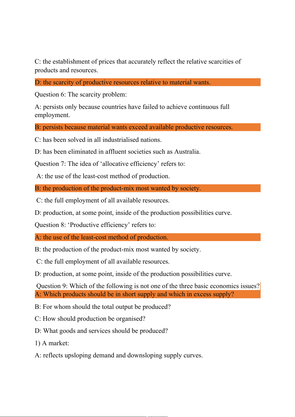 Question 7: The idea of ‘allocative efficiency’ refers to: