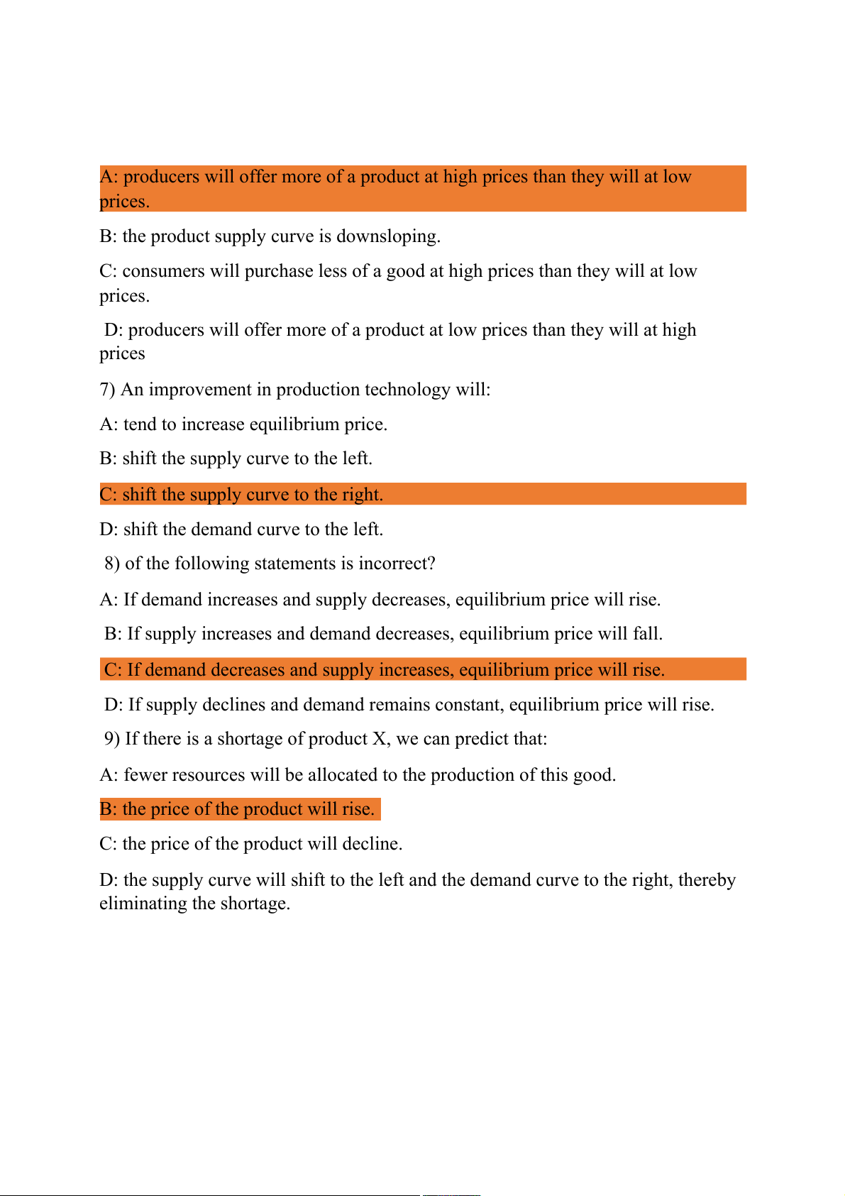 9) If there is a shortage of product X, we can predict that:
