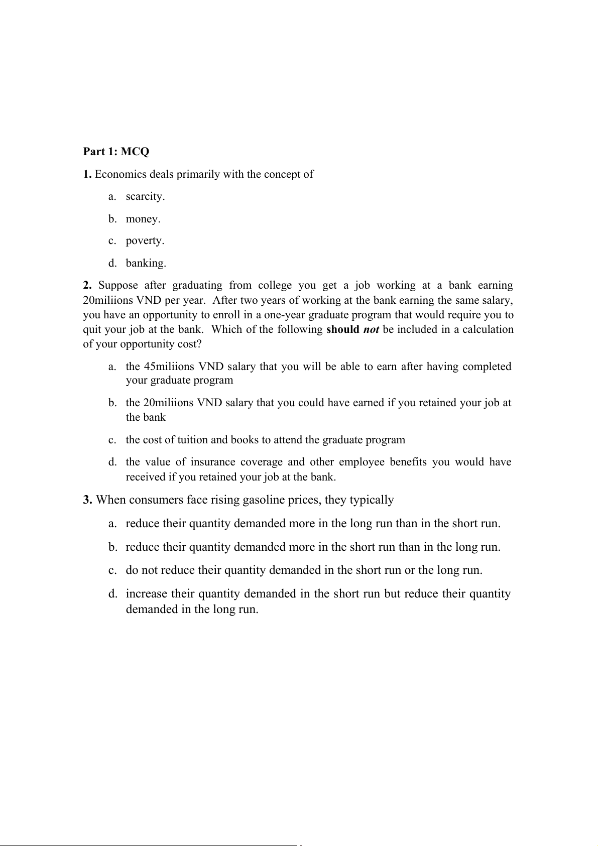 1. Economics deals primarily with the concept of a. scarcity. b. money. c. poverty. d. banking.