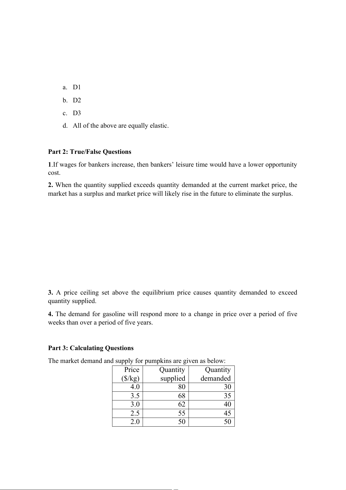 Refer to Figure 1. As price falls from Pa to Pb, which demand curve represents the most elastic demand? a. D1 b. D2 c. D3