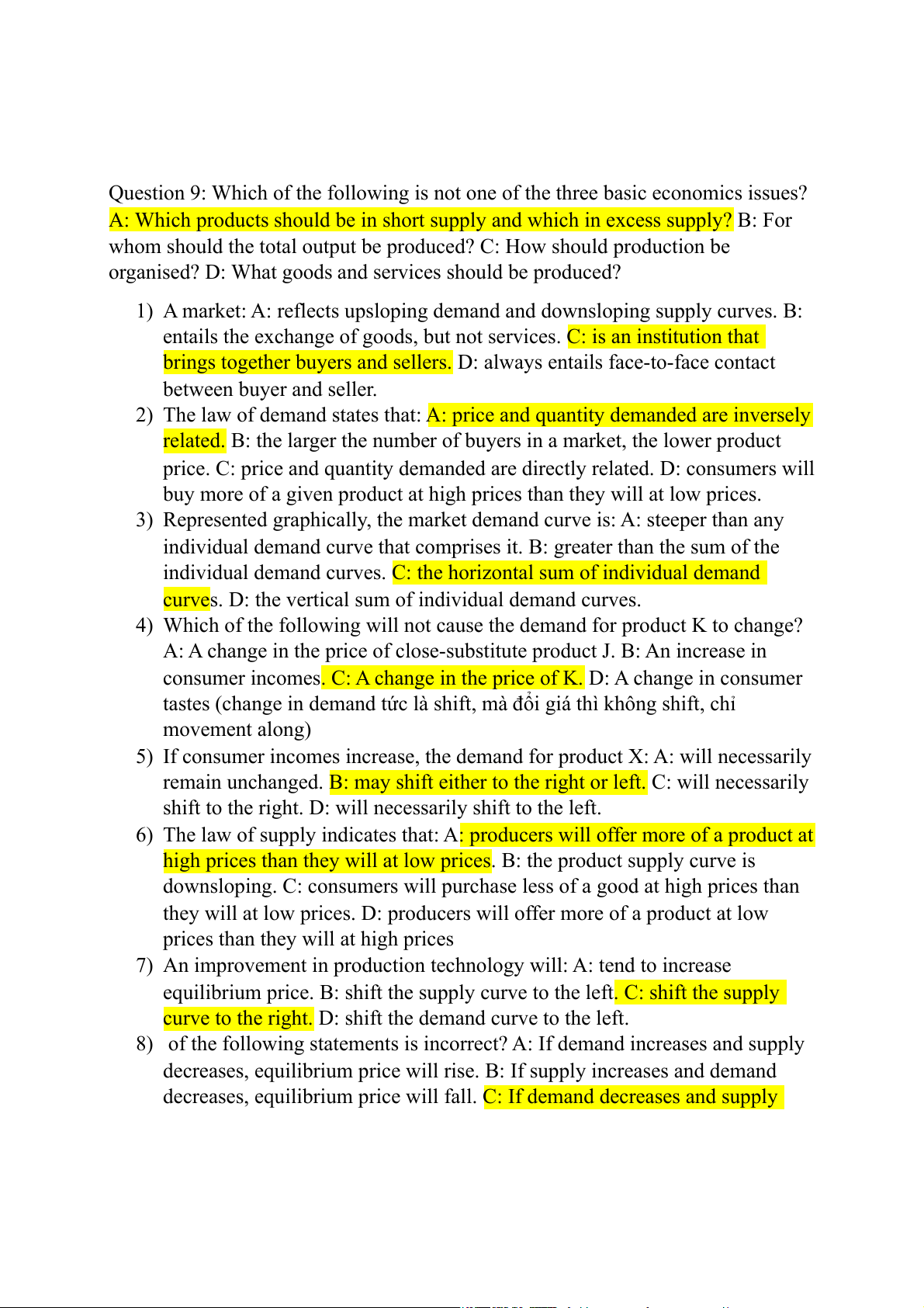 8) of the following statements is incorrect? A: If demand increases and supply