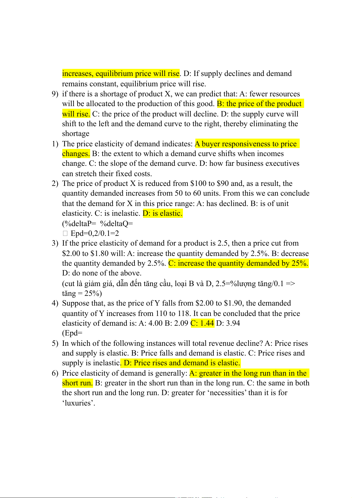 6) Price elasticity of demand is generally: A: greater in the long run than in the