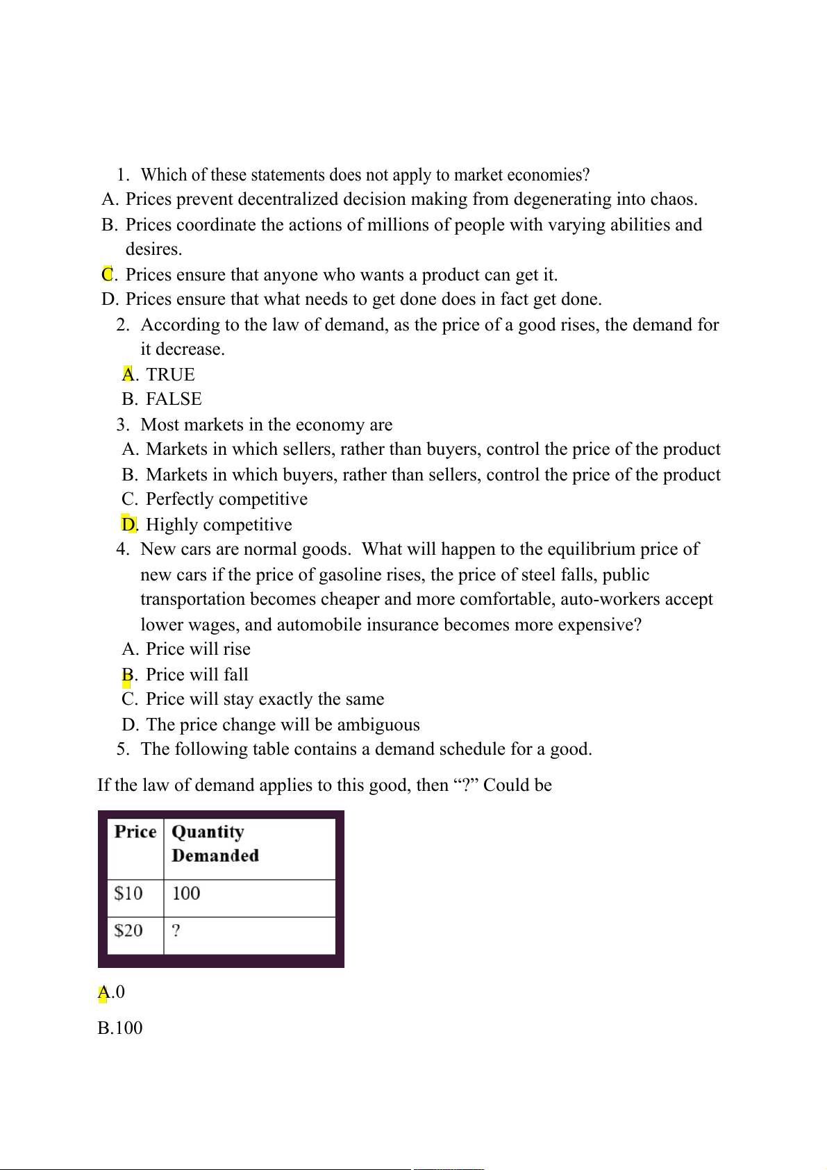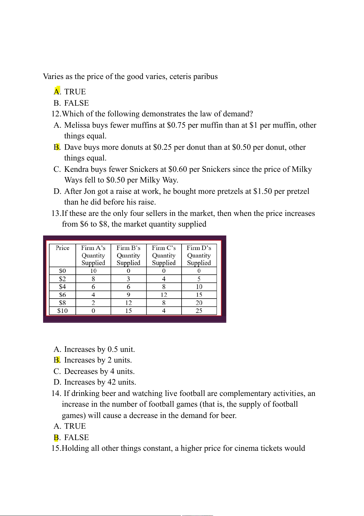 2. According to the law of demand, as the price of a good rises, the demand for it decrease. A. TRUE B. FALSE