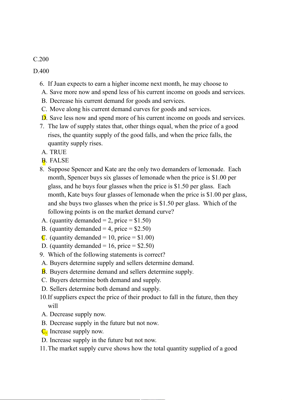 If the law of demand applies to this good, then “?” Could be A.0 B.100 C.200 D.400