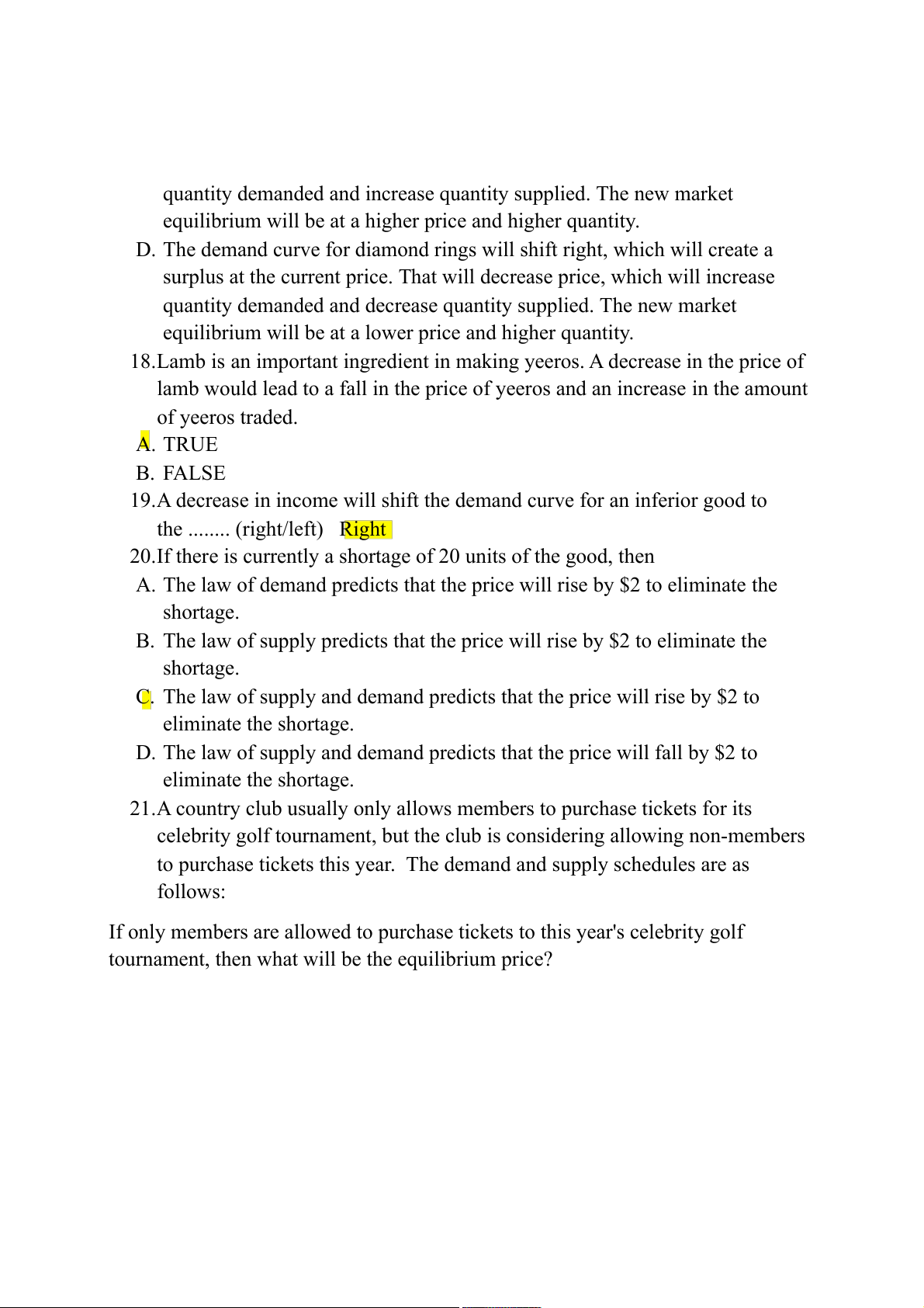 20.If there is currently a shortage of 20 units of the good, then