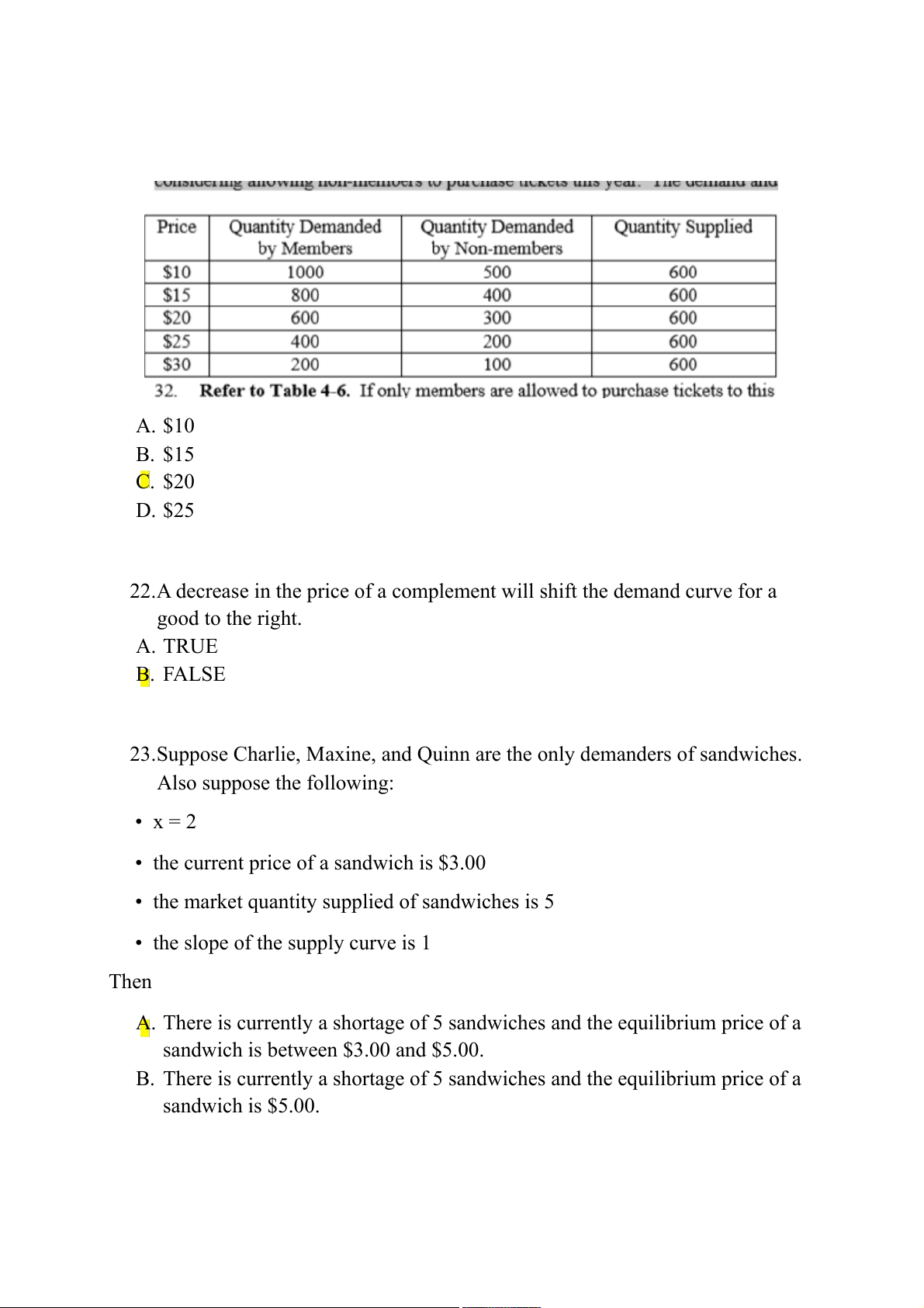 23.Suppose Charlie, Maxine, and Quinn are the only demanders of sandwiches. Also suppose the following: • x = 2