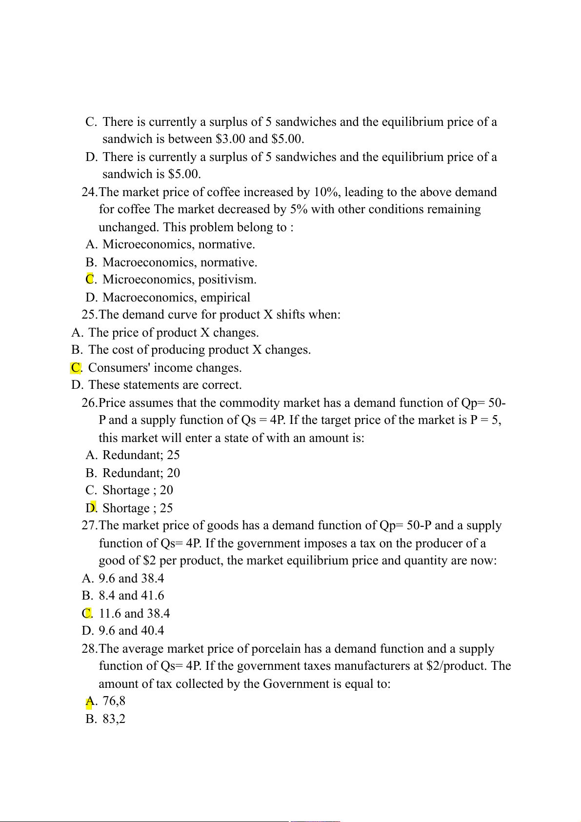 26.Price assumes that the commodity market has a demand function of Qp= 50-