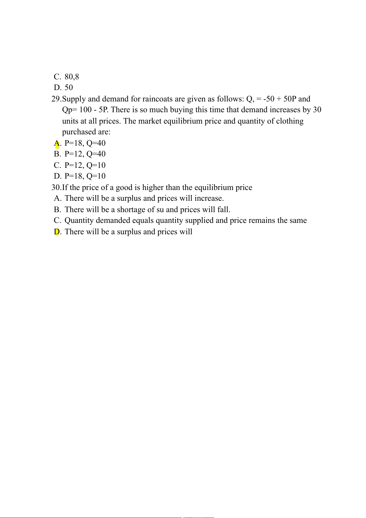 30.If the price of a good is higher than the equilibrium price