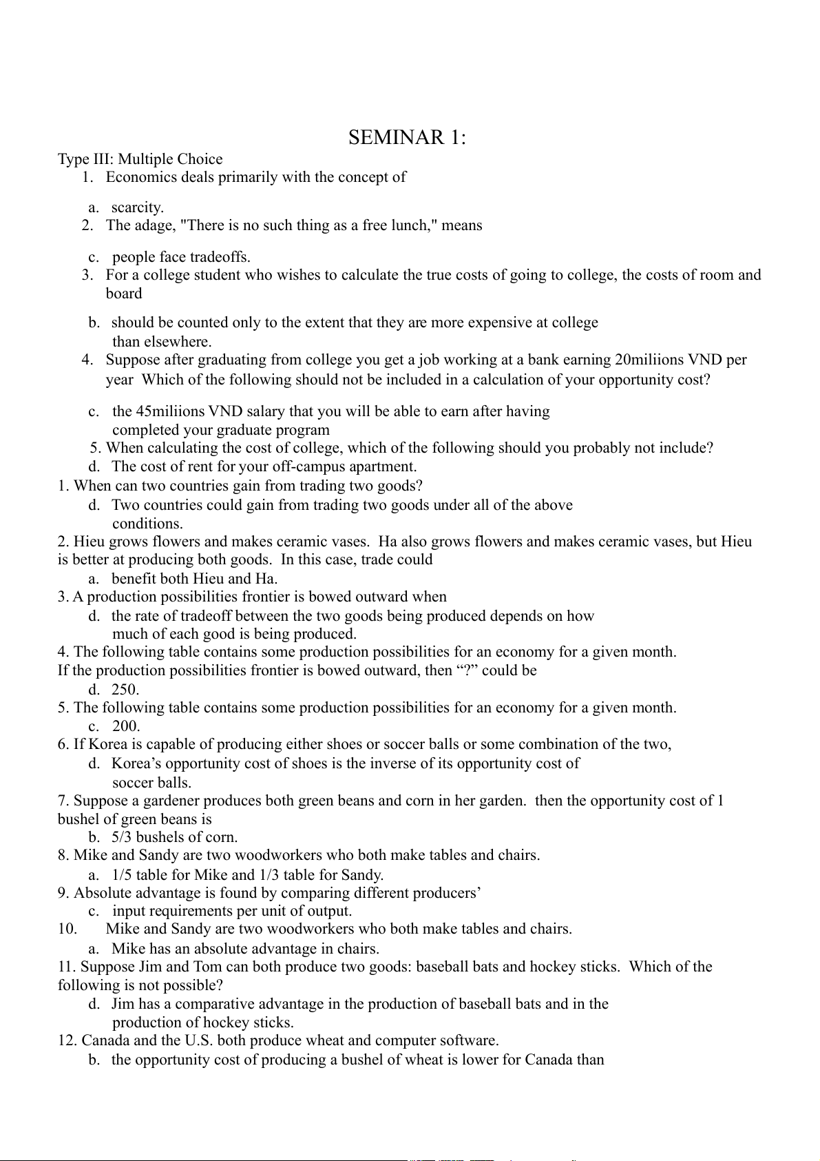 SEMINAR 1: Type III: Multiple Choice