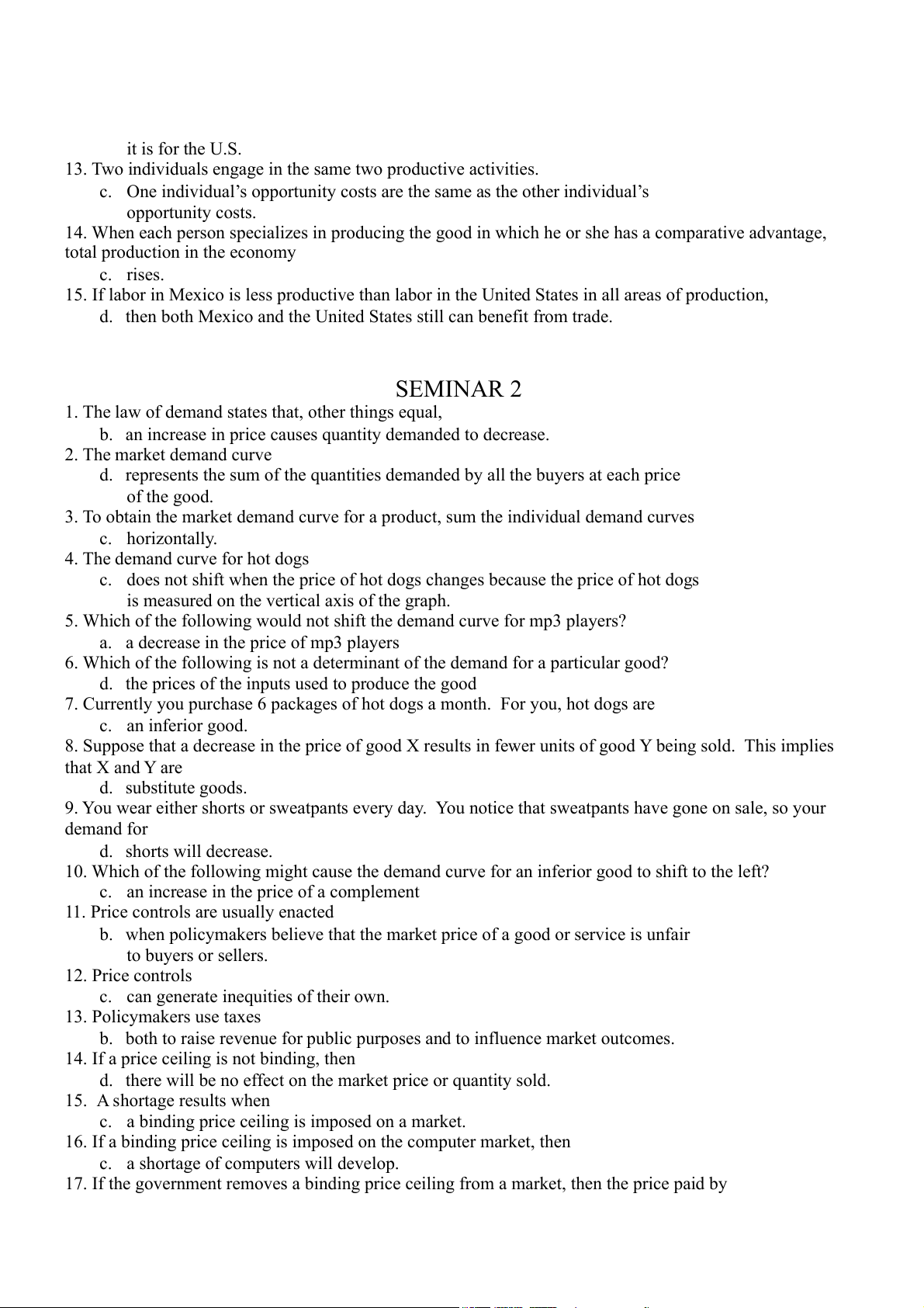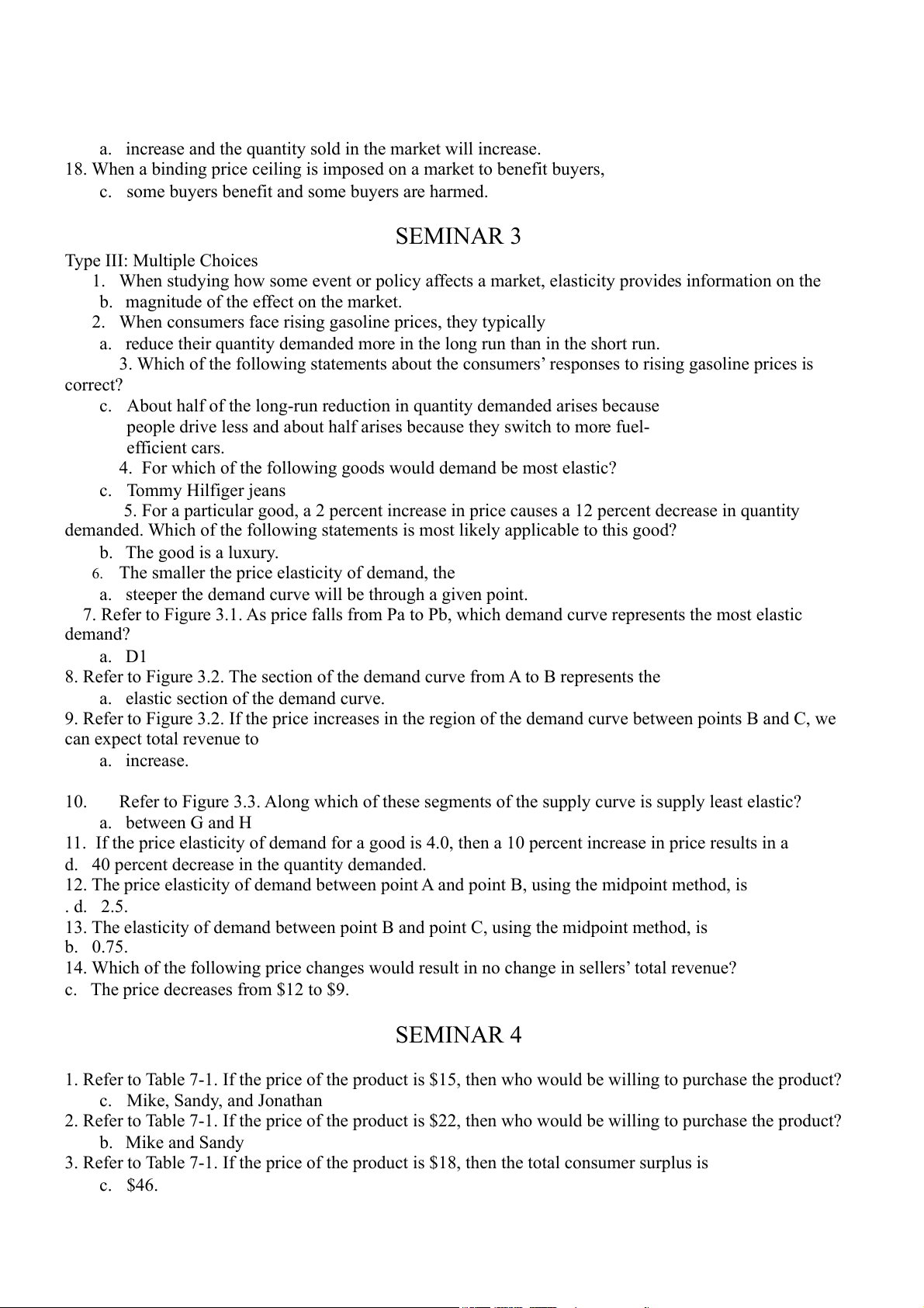 c. The price decreases from $12 to $9. SEMINAR 4