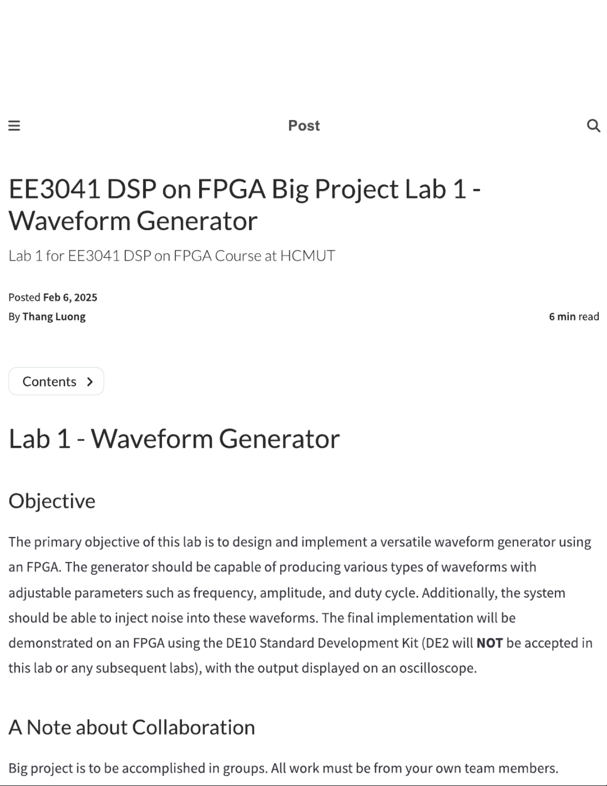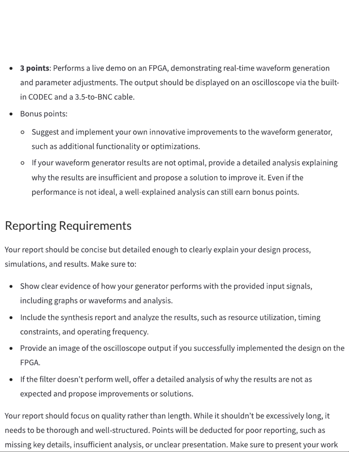 EE3041 DSP on FPGA Big Project Lab 1: Waveform Generator Design - Studocu