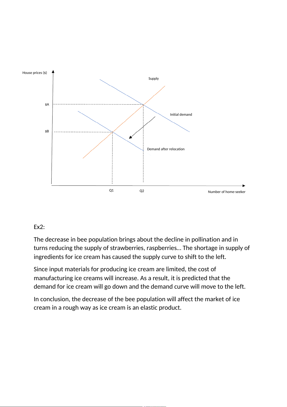 market price to meet equilibrium. House prices ($) Supply $A Initial demand $B Demand after relocation Q1 Q2 Number of home-seeker Ex2: