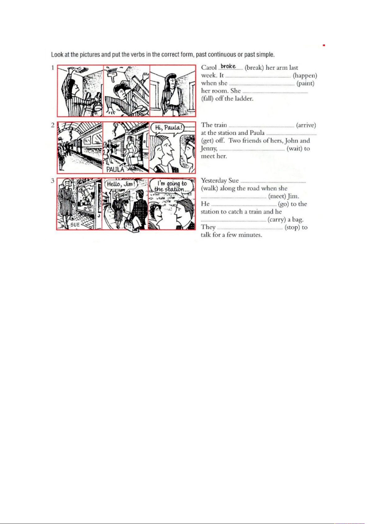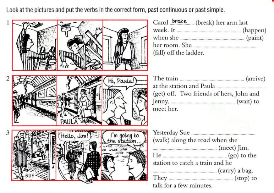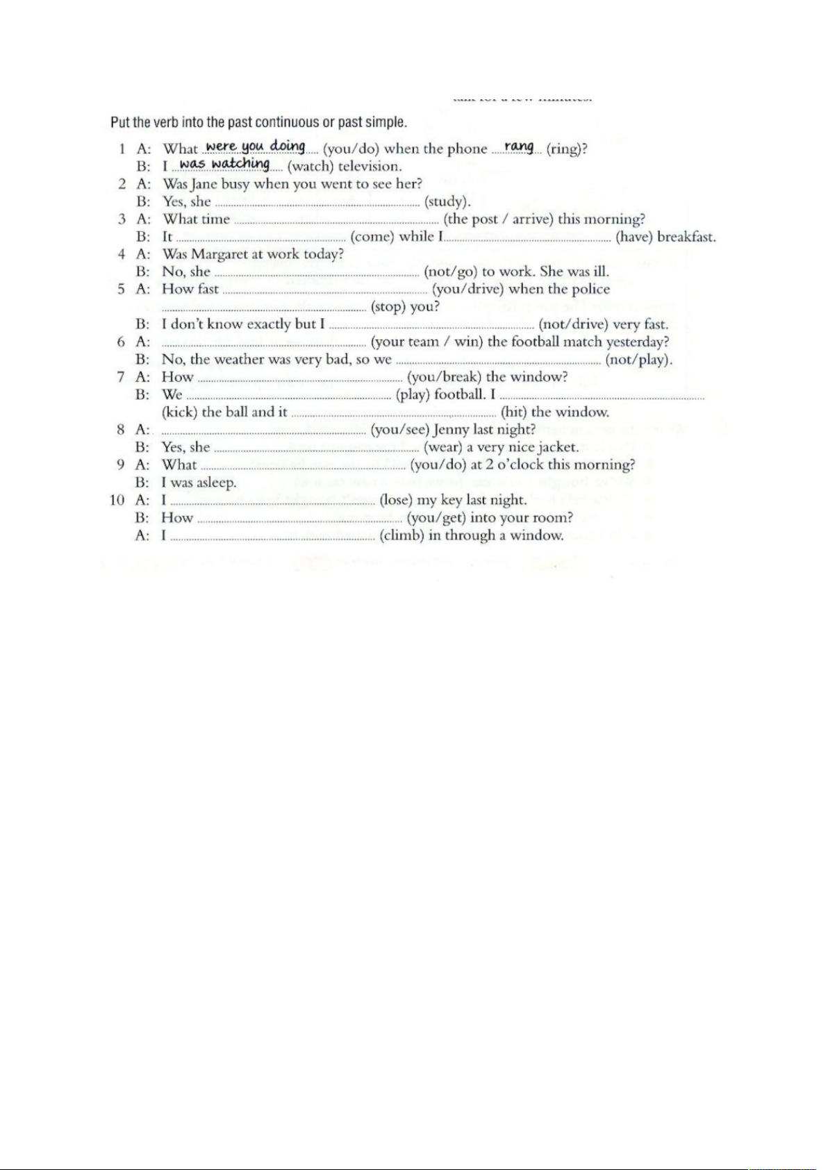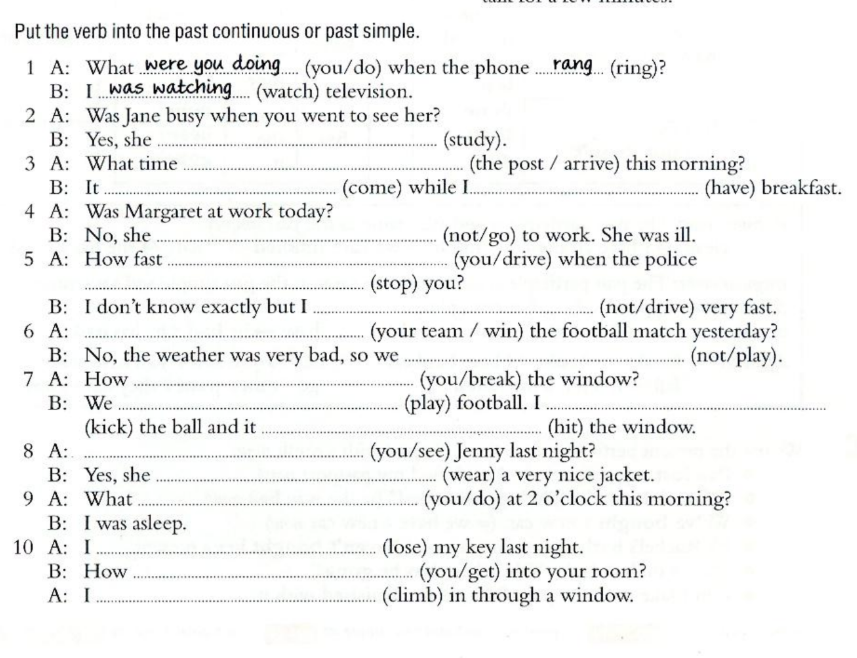 2) was studying; 3) did…arrive, was coming was having; 4) didn’t go;