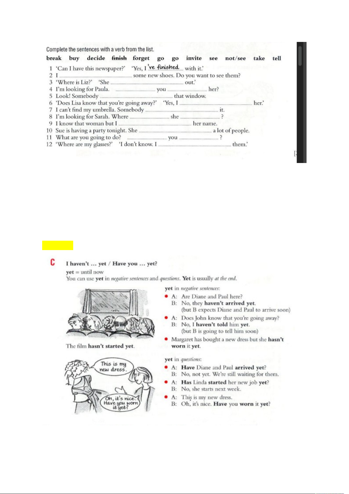 2. No, they’ve already watched it. | 5. I’ve already read it. |