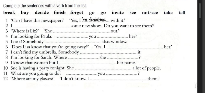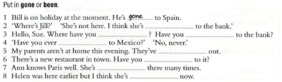 2. has gone | 8. haven’t forgotten |