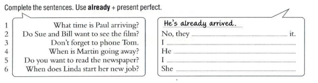 3. I have already phoned him. | 6. She has already started |