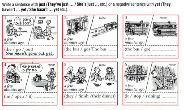 5. They’ve not finished their dinner yet. | 5. They’ve just finished their dinner. |