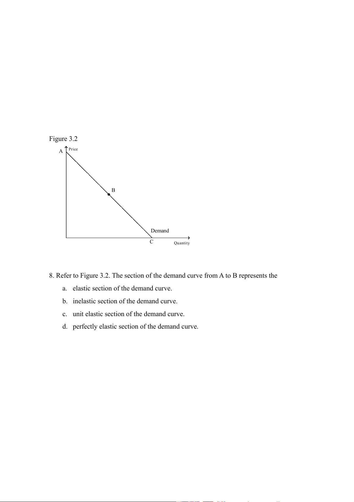 8. Refer to Figure 3.2. The section of the demand curve from A to B represents the
