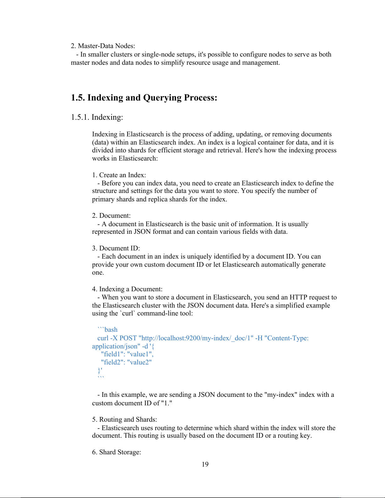 store data but focus solely on cluster management and coordination. 18 2. Master-Data Nodes: