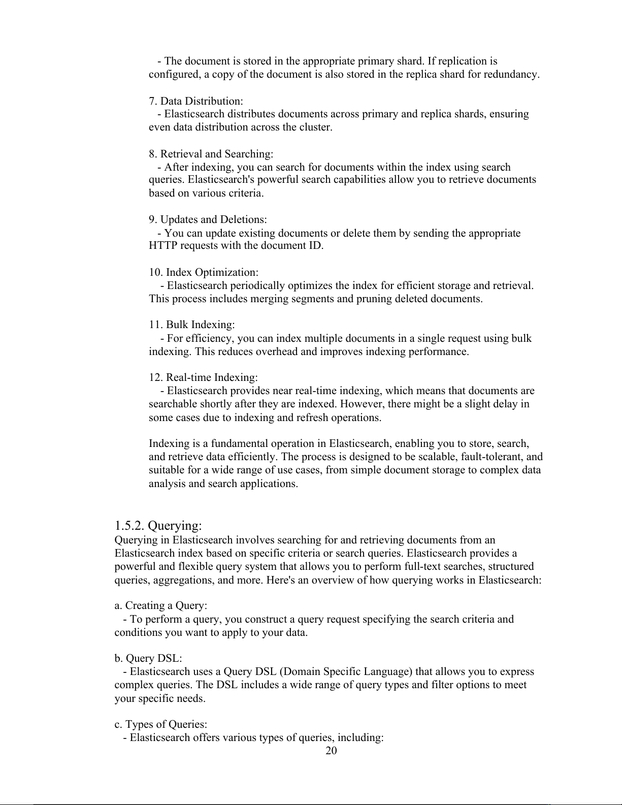 queries. Elasticsearch's powerful search capabilities allow you to retrieve documents based on various criteria. 9. Updates and Deletions: