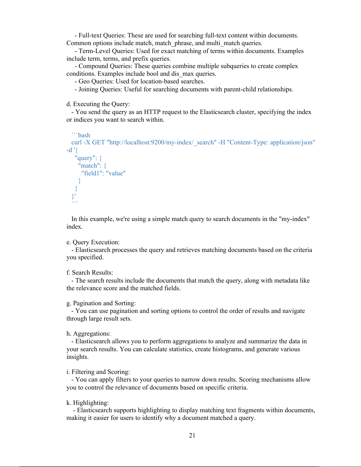 - Joining Queries: Useful for searching documents with parent-child relationships. d. Executing the Query:
