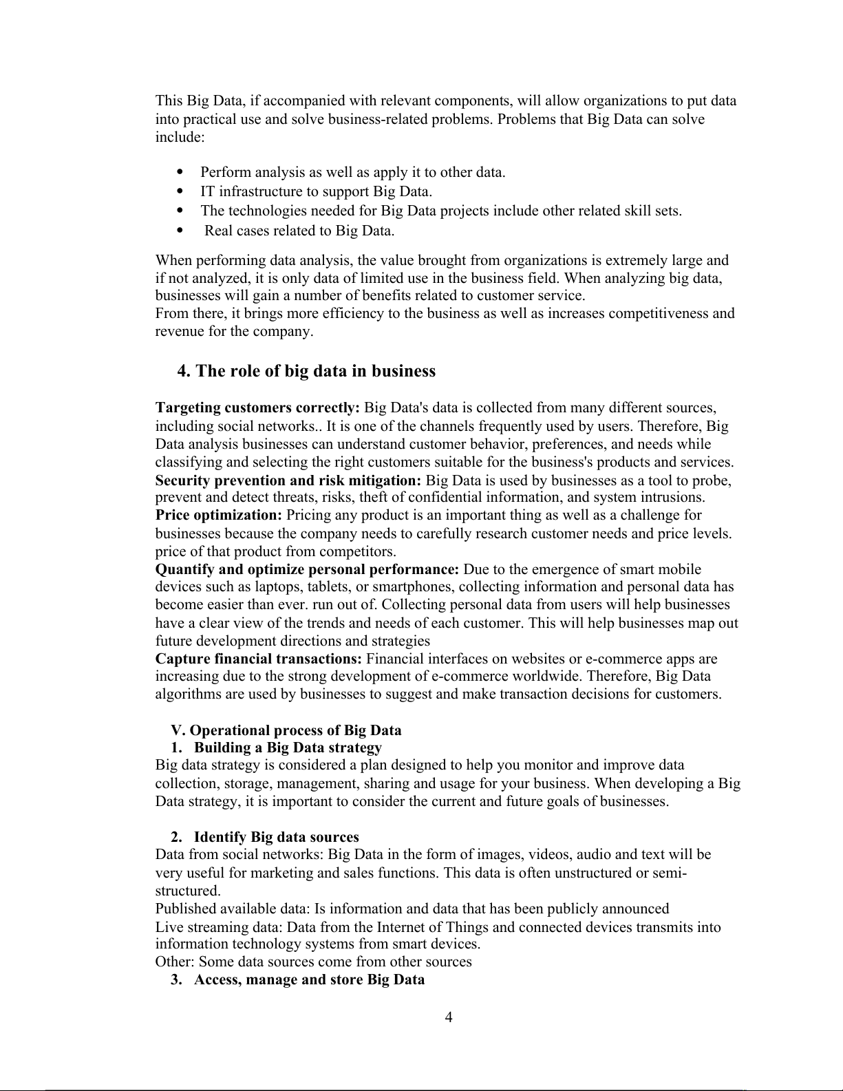 collection, storage, management, sharing and usage for your business. When developing a Big