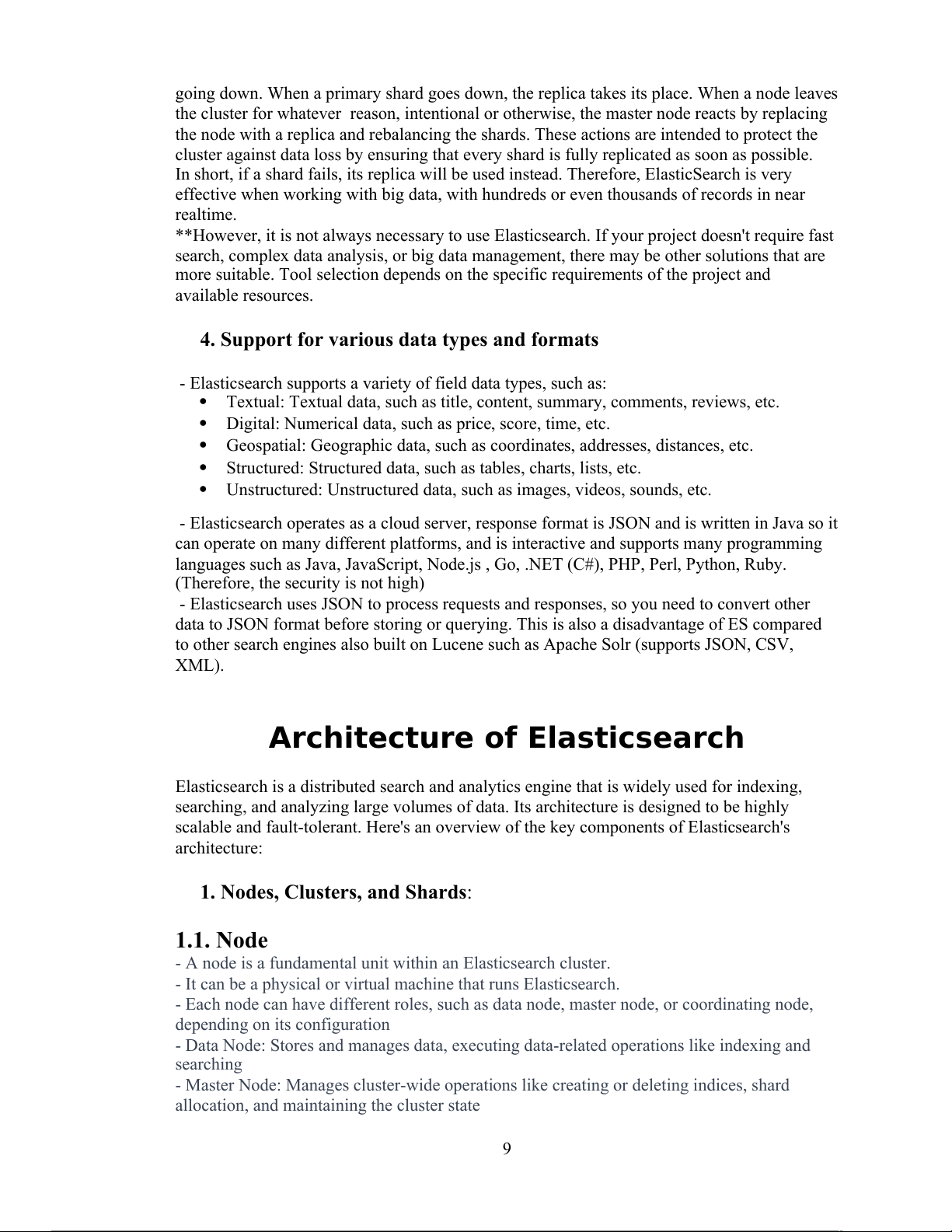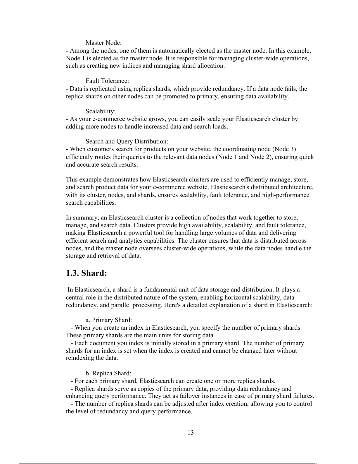 redundancy. If a data node fails, replica shards can be promoted to primary, ensuring data availability.