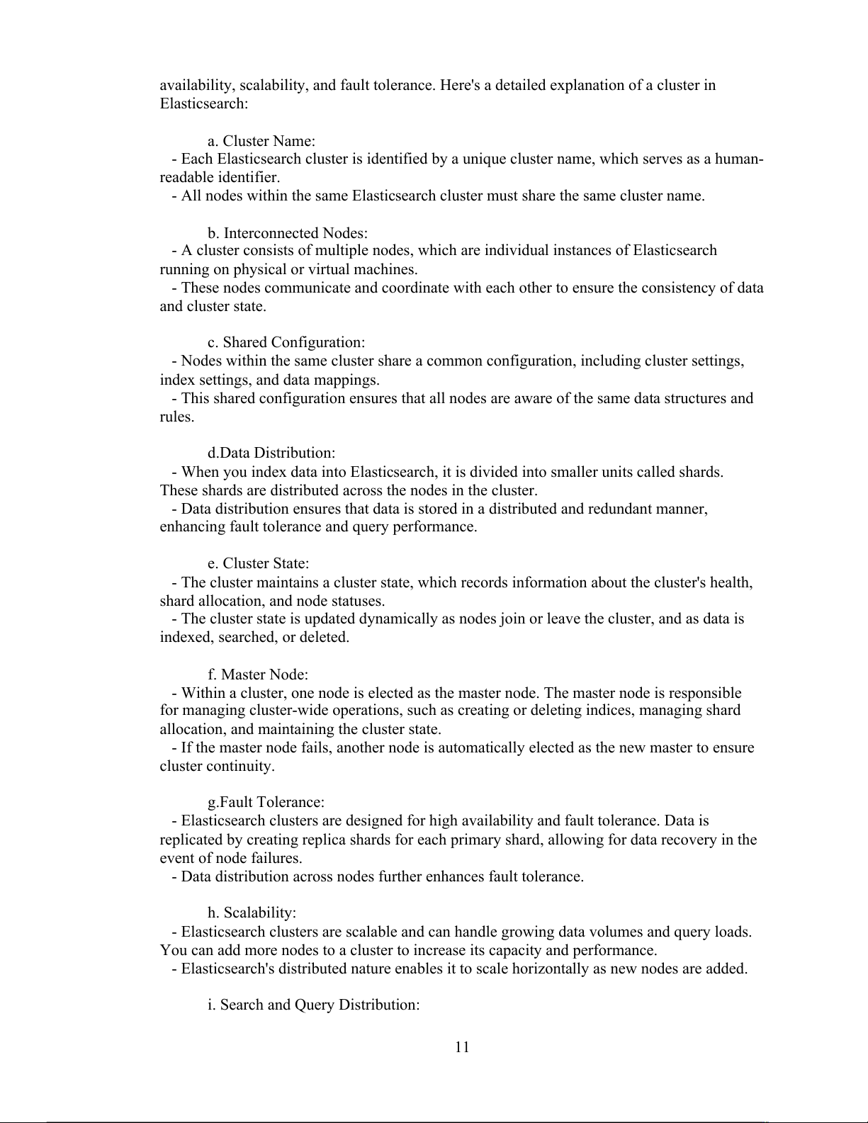 - Elasticsearch clusters can be scaled horizontally by adding more data nodes. This enables