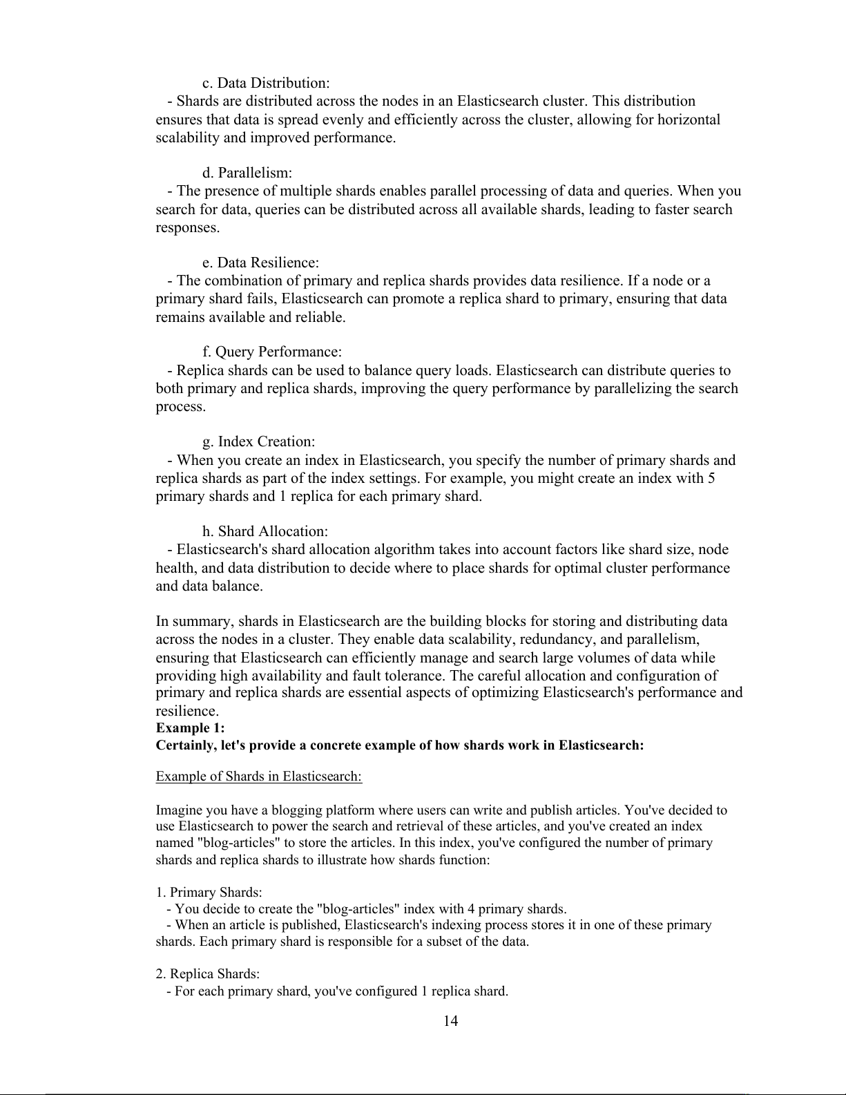 configured, a copy of the document is also stored in the replica shard for redundancy. 7. Data Distribution: