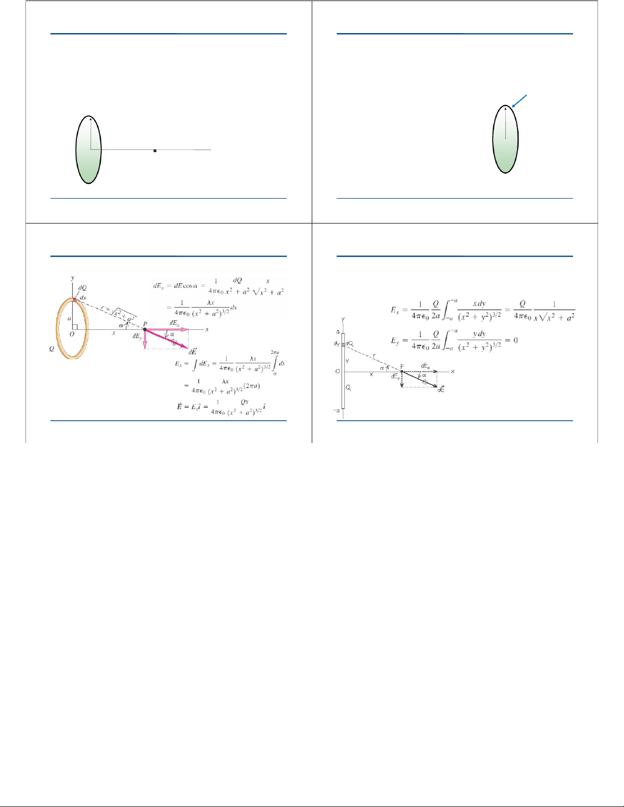 •What is dQ in a tiny segment ds? –Total Charge Q ds Total charge Q –Total length = 2πa a a E –Charge/length = λ P=? Px –λ = Q/ 2πa •dQ = λds HUST – CTTT PH 1026 HUST – CTTT PH 1026