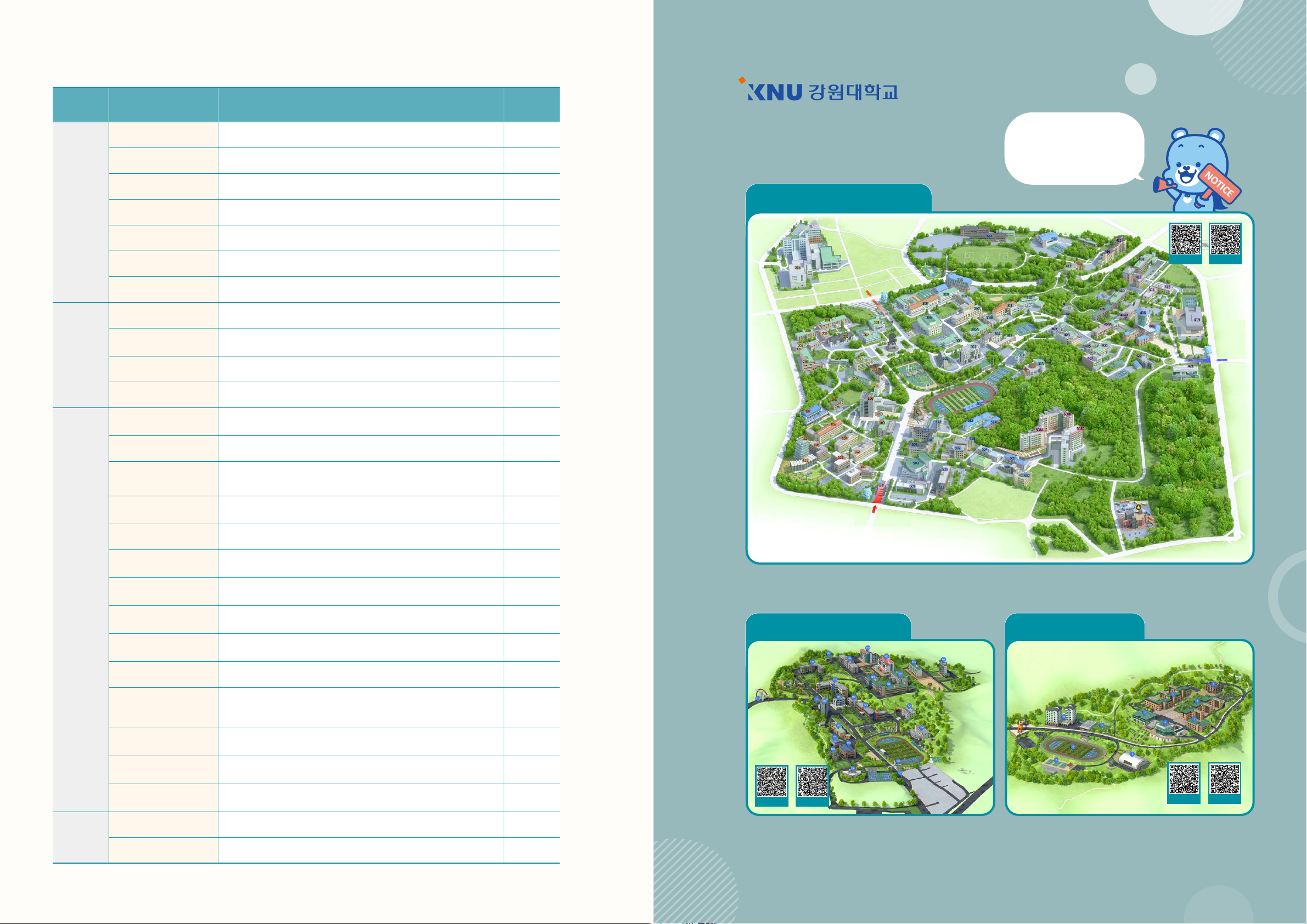 2026 Spring Graduate School Admission Guidelines for International Students•29 >> Samcheok Campus Phone College Department Website (033- You can see details by Public Administration https://cms.kangwon.ac.kr/he 570-6630 Campus Map accessing the QR Tourism https://cms.kangwon.ac.kr/tour 540-3430 for each campus or the URL listed below. English https://cms.kangwon.ac.kr/ya 570-6650 Humanities Chuncheon Campus Map & Social Early Childhood Education